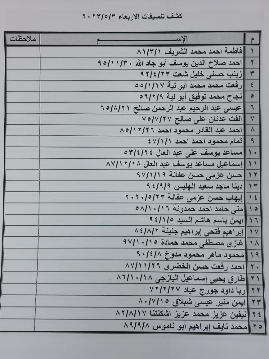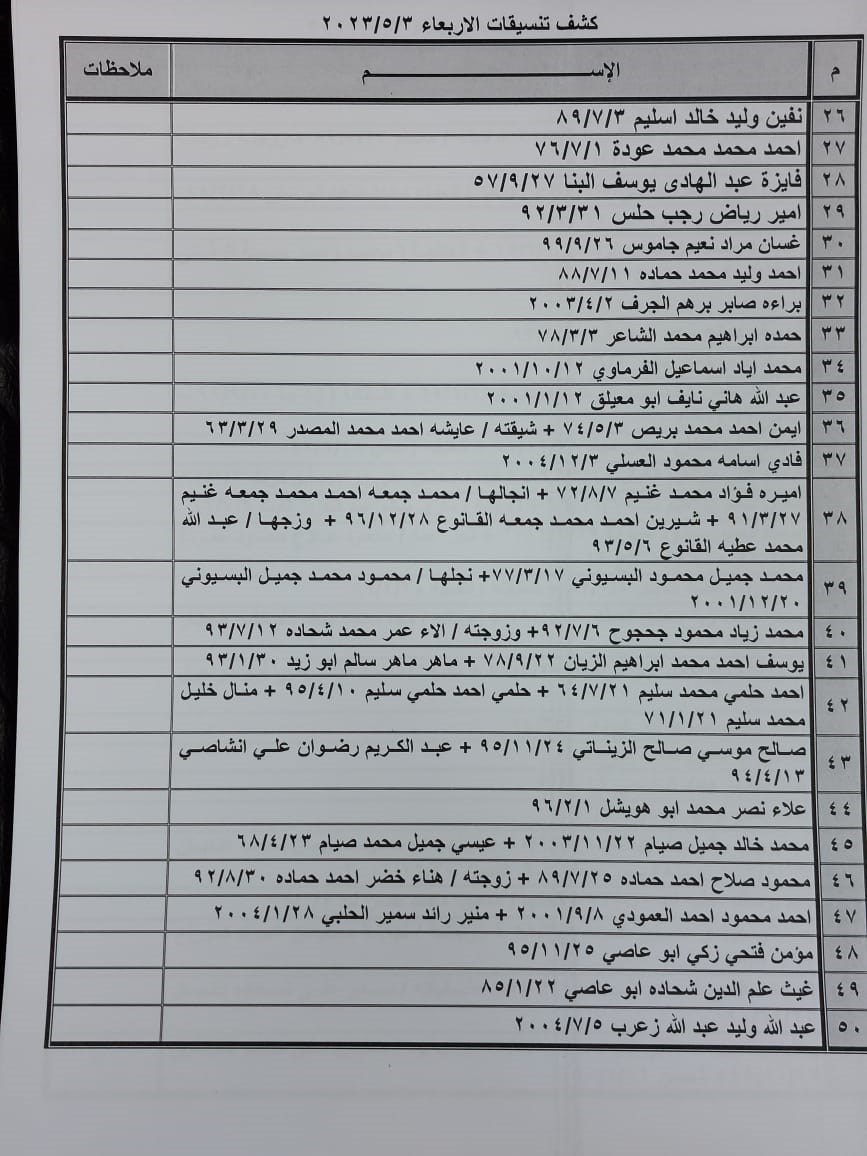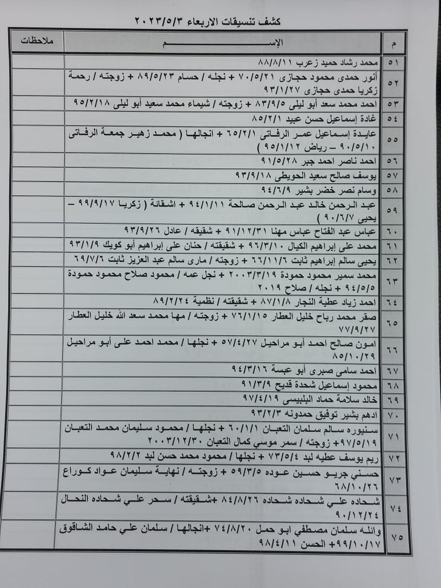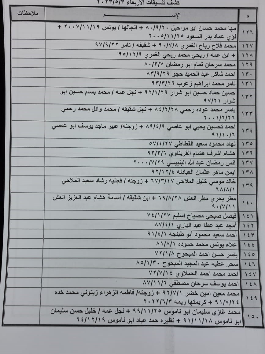 تعلن الهيئة العامة للمعابر والحدود بوزارة الداخلية والأمن الوطني عن وصول كشف "تنسيقات مصرية" للسفر عبر معبر رفح البري يوم الأربعاء (3 مايو)، والذين عليهم التواجد س 7:00 صباحاً في الصالة الخارجية للمعبر لتسهيل سفرهم.