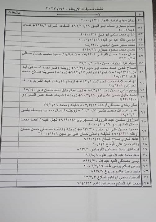 تعلن الهيئة العامة للمعابر والحدود بوزارة الداخلية والأمن الوطني عن وصول كشف "تنسيقات مصرية" للسفر عبر معبر رفح البري يوم الأربعاء (10 مايو)، والذين عليهم التواجد س 7:00 صباحاً في الصالة الخارجية للمعبر لتسهيل سفرهم.