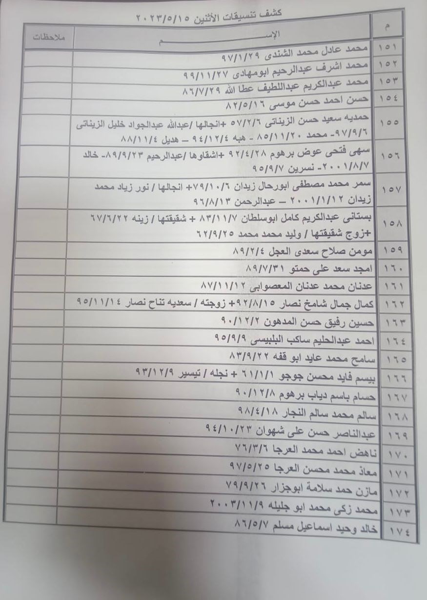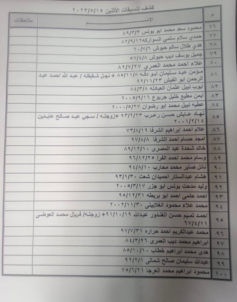 تعلن الهيئة العامة للمعابر والحدود بوزارة الداخلية والأمن الوطني عن وصول كشف "تنسيقات مصرية" للسفر عبر معبر رفح البري يوم الإثنين (15 مايو)، والذين عليهم التواجد س 7:00 صباحاً في الصالة الخارجية للمعبر لتسهيل سفرهم.