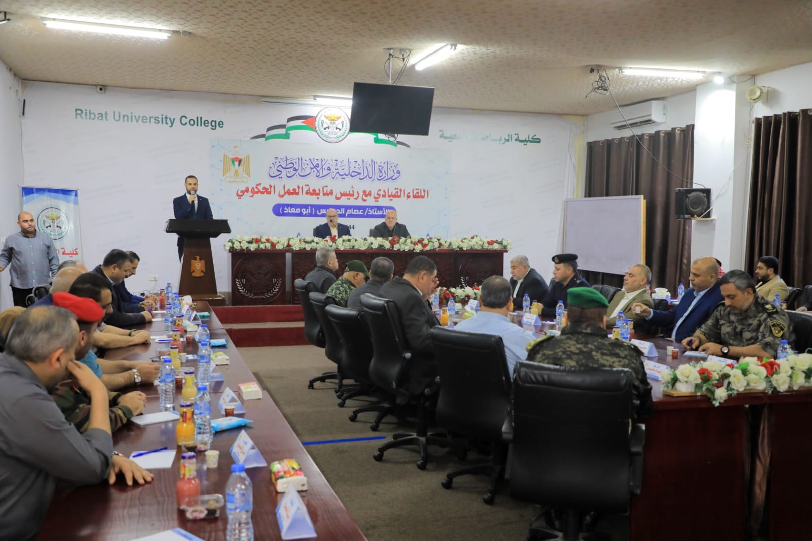 وحضر اللقاء، الذي عقد في قاعة كلية الرباط الجامعية، كل من وكيل الوزارة اللواء ناصر مصلح ومساعده أ. سامي نوفل، ومدير عام قوى الأمن الداخلي اللواء محمود أبو وطفة، ونائب قائد قوات الأمن الوطني وجيش التحرير اللواء جمال الجراح، والوكيل الساعد للوزارة أ. عاهد حمادة، إلى جانب قادة الأجهزة الأمنية والإدارات المركزية والهيئات والوحدات.