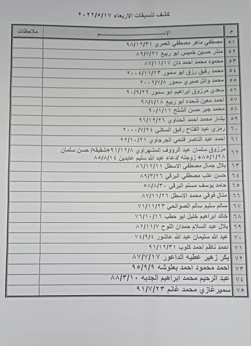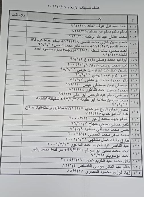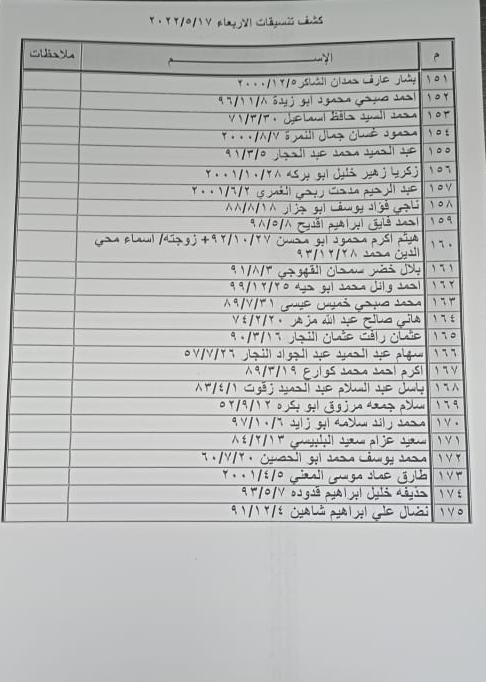 تعلن الهيئة العامة للمعابر والحدود بوزارة الداخلية والأمن الوطني عن وصول كشف "تنسيقات مصرية" للسفر عبر معبر رفح البري يوم الأربعاء (17 مايو)، والذين عليهم التواجد س 7:00 صباحاً في الصالة الخارجية للمعبر لتسهيل سفرهم.