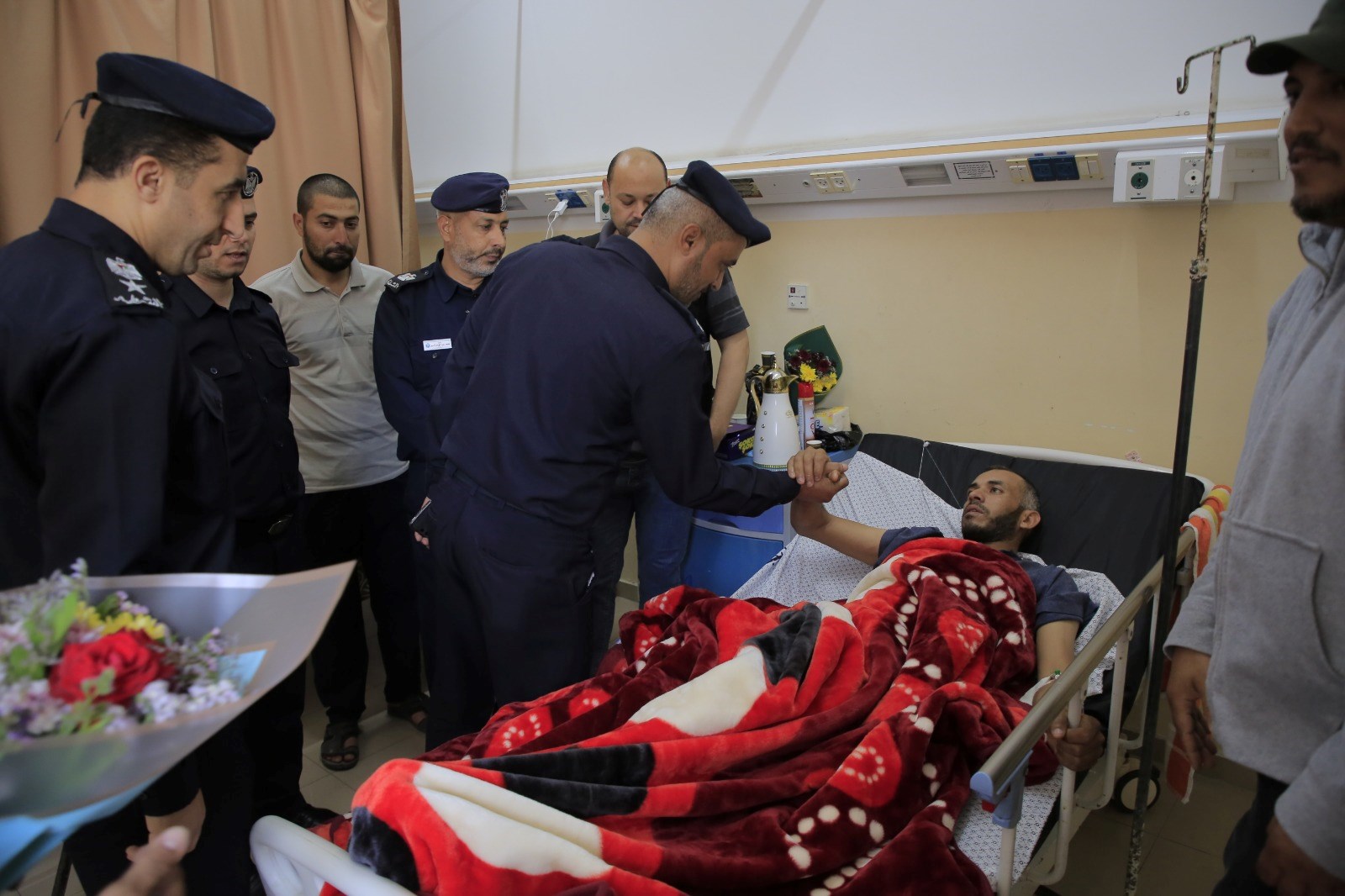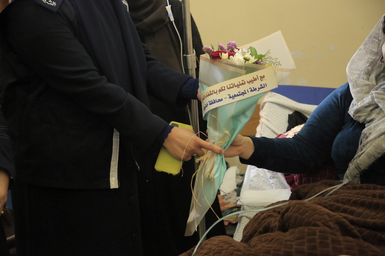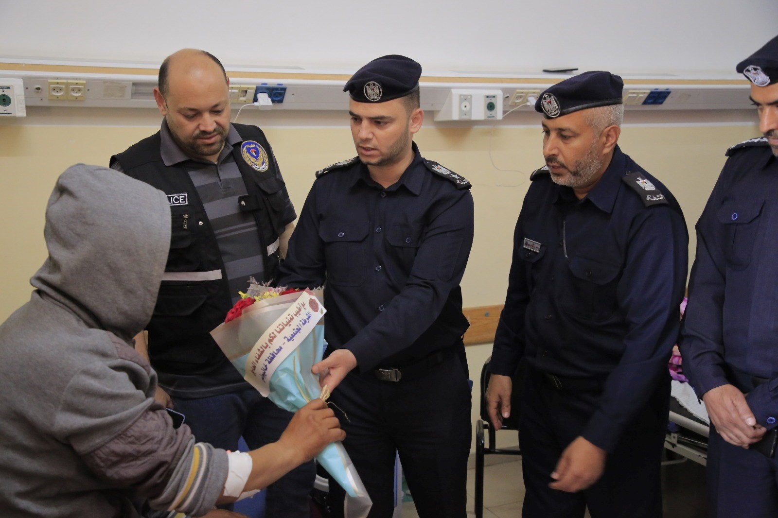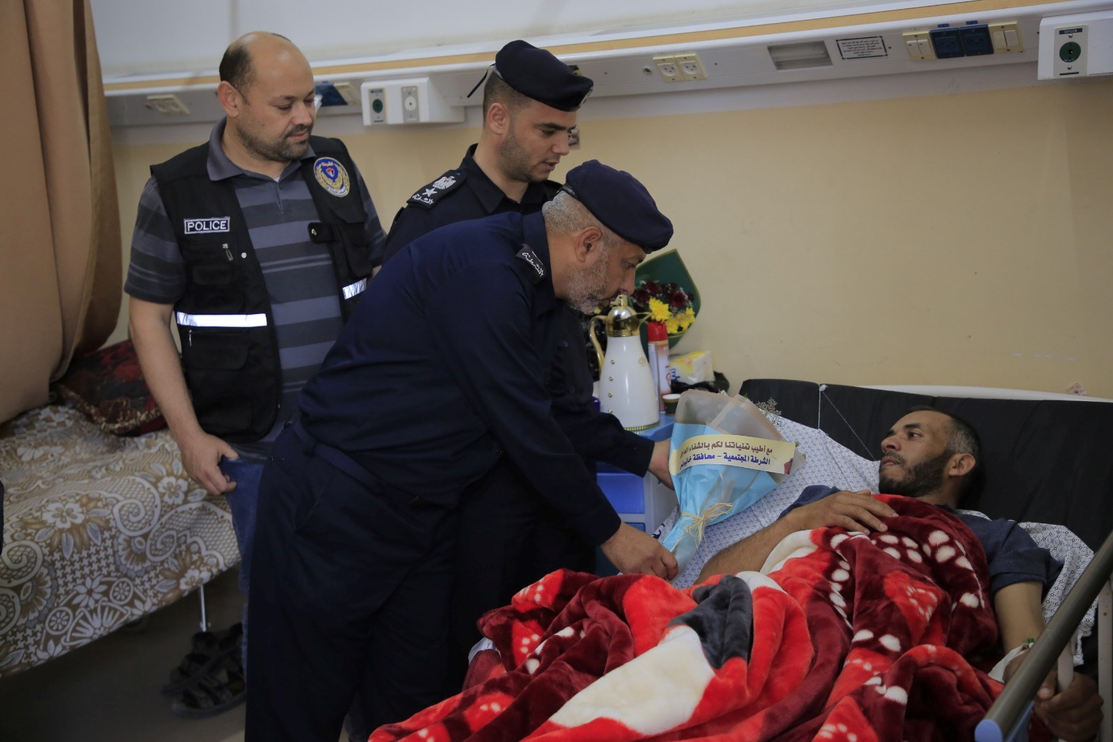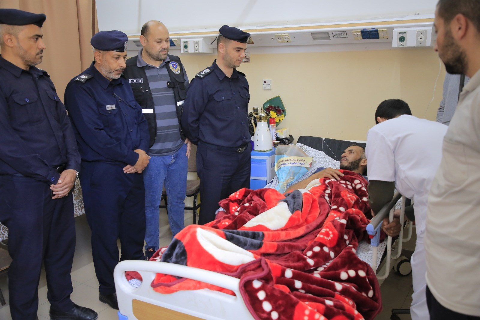كما تفقدت الشرطة المجتمعية برفقة عددٍ من ضباط الدائرة والمباحث الطبية المصابين الذين يتلقوا الرعاية الصحية في المستشفيات واطمأنوا على حالتهم الصحية، متمنيين لهم الشفاء العاجل.