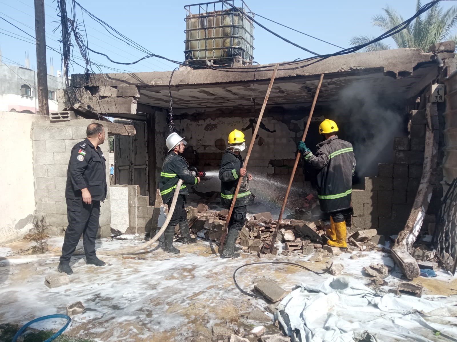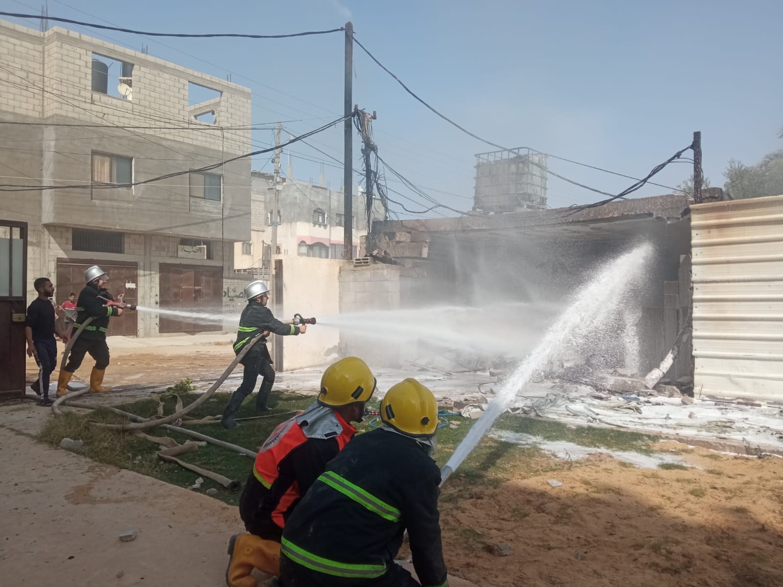 قوات من الدفاع المدني بمساندة من الشرطة، تتعامل مع حريق كبير نشب في نقطة عشوائية لتعبئة الغاز في مخيم النصيرات وسط قطاع غزة قبل قليل، وأدى لإصابة أربعة من عناصر الدفاع المدني تم نقلهم للمستشفى لتلقي العلاج.