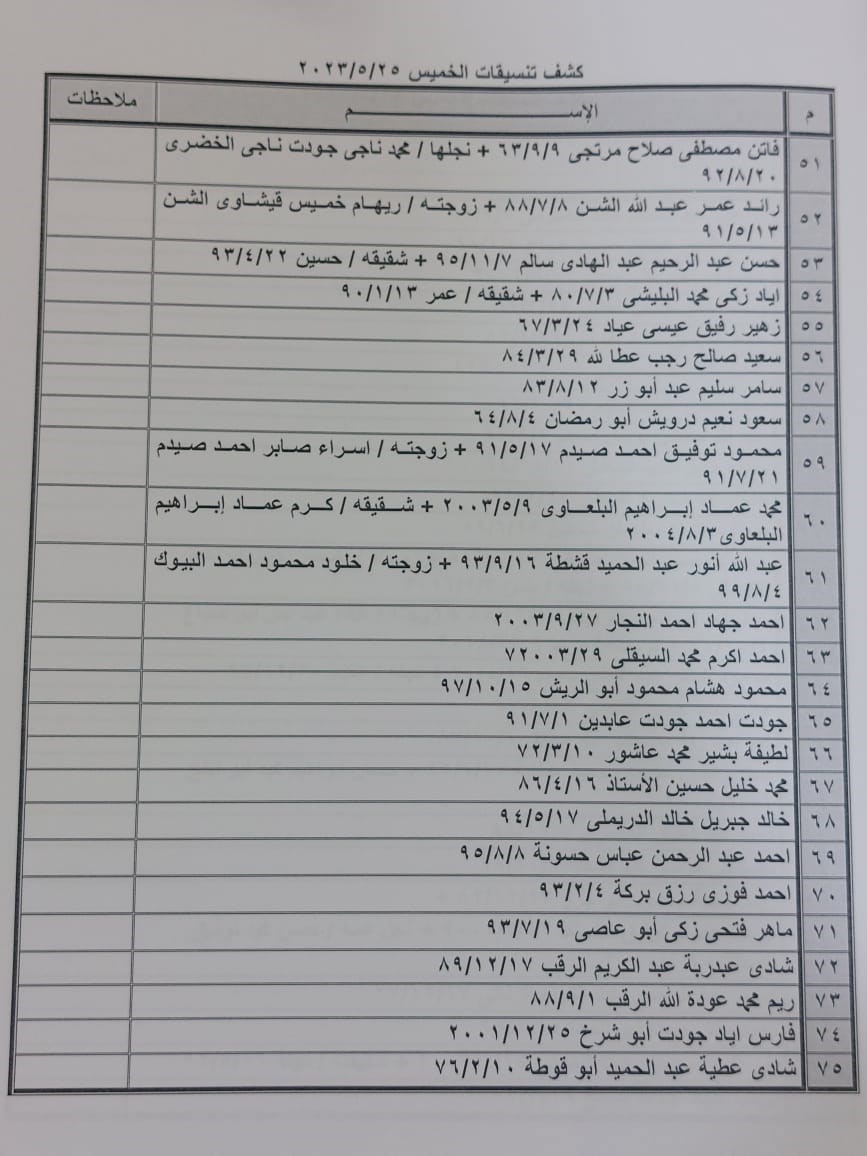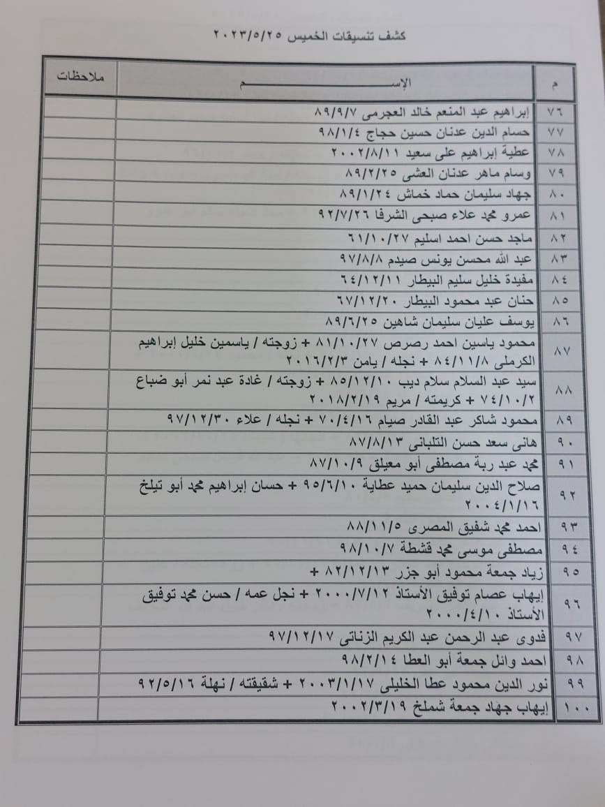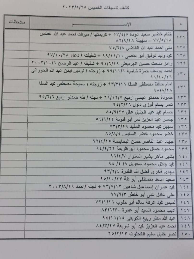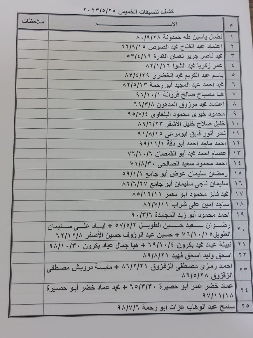 تعلن الهيئة العامة للمعابر والحدود بوزارة الداخلية والأمن الوطني عن وصول كشف "تنسيقات مصرية" للسفر عبر معبر رفح البري يوم الخميس (25 مايو)، والذين عليهم التواجد س 7:00 صباحاً في الصالة الخارجية للمعبر لتسهيل سفرهم.