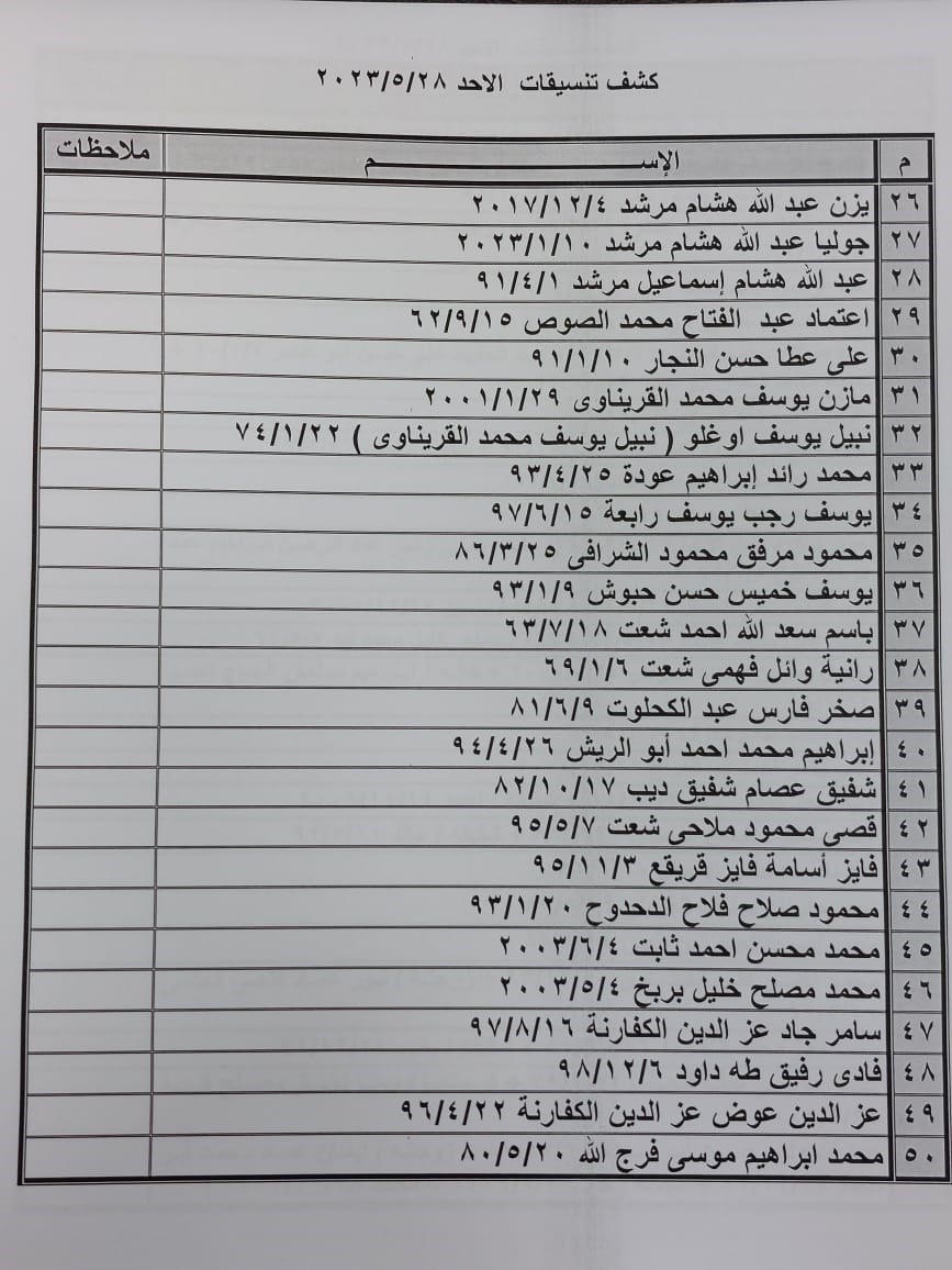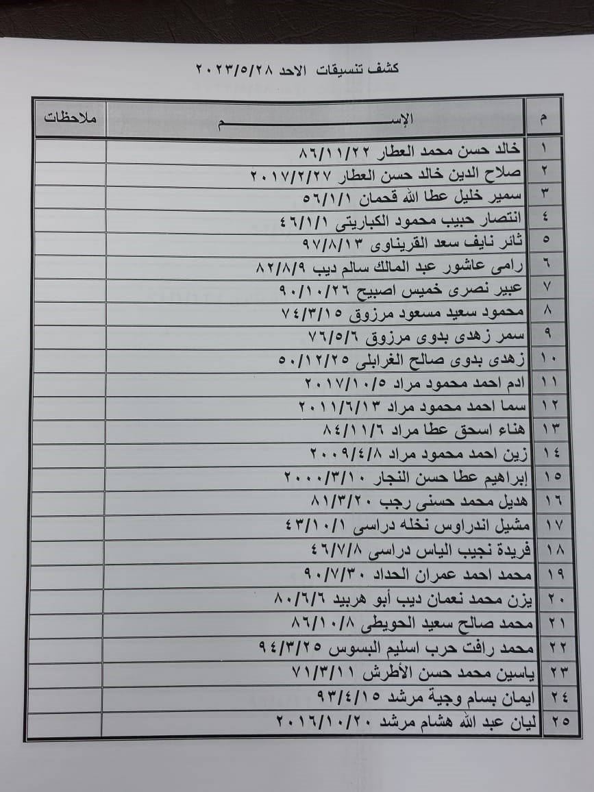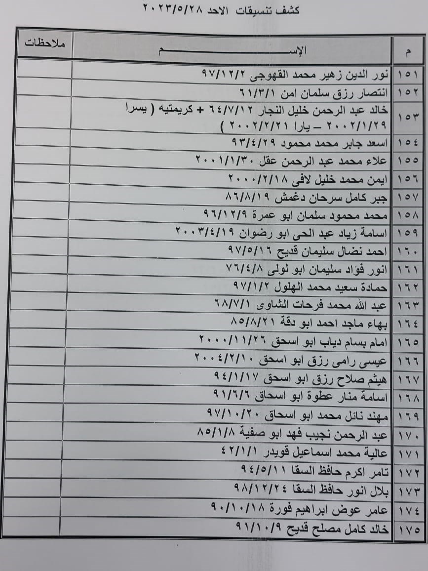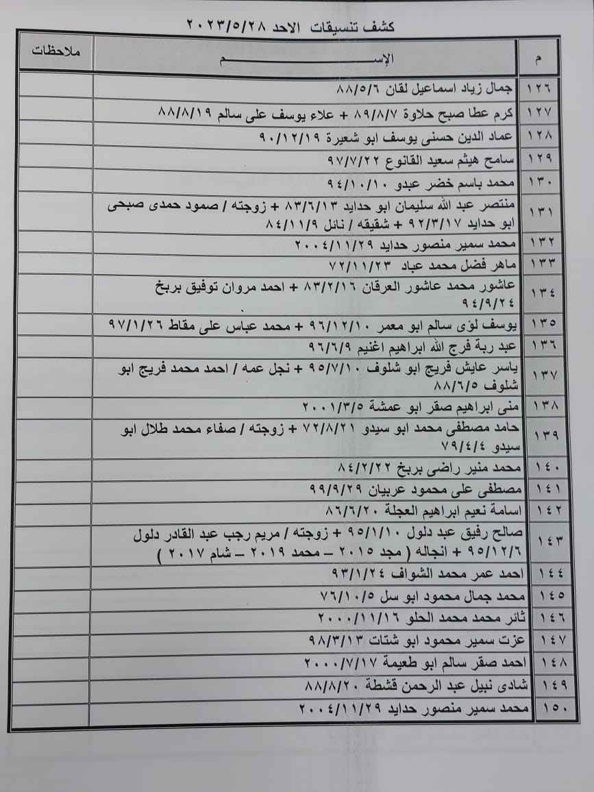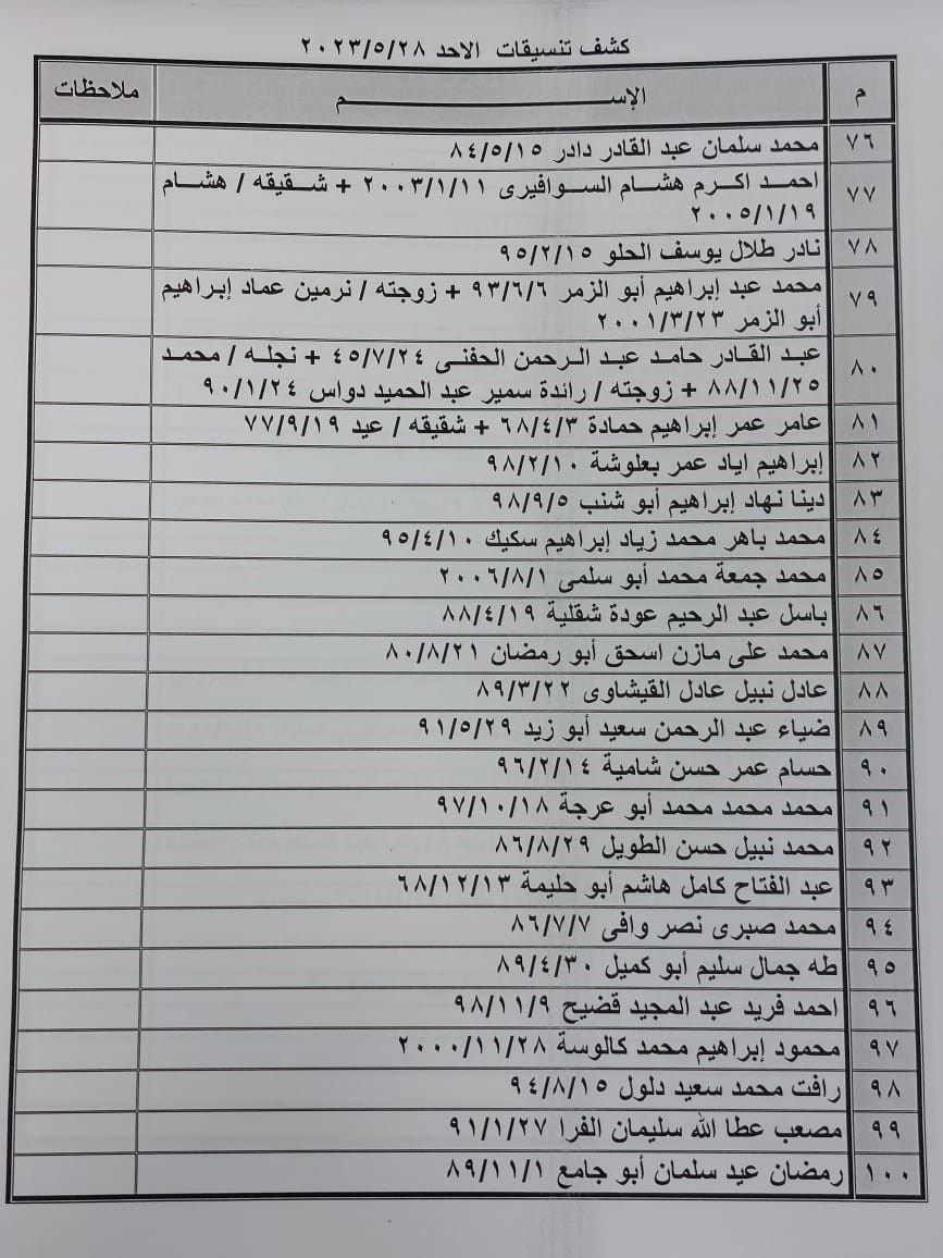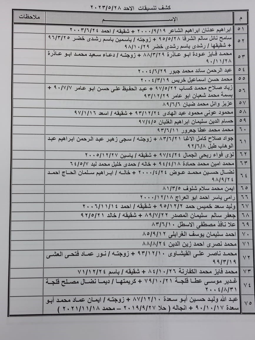 تعلن الهيئة العامة للمعابر والحدود بوزارة الداخلية والأمن الوطني عن وصول كشف "تنسيقات مصرية" للسفر عبر معبر رفح البري يوم الأحد (28 مايو)، والذين عليهم التواجد س 7:00 صباحاً في الصالة الخارجية للمعبر لتسهيل سفرهم.