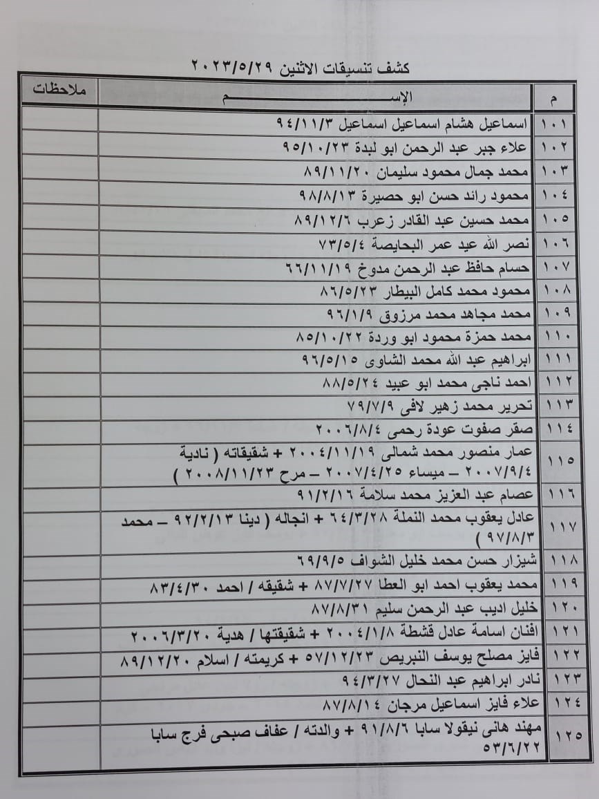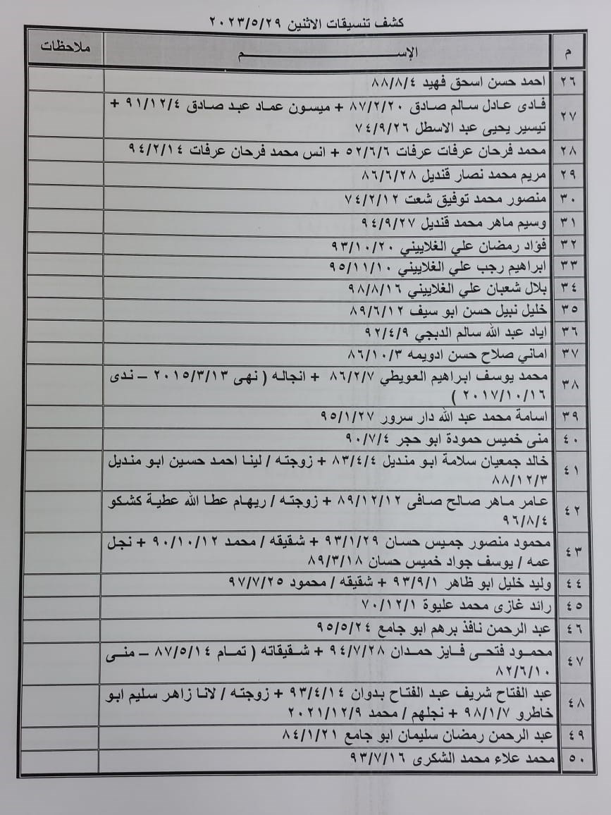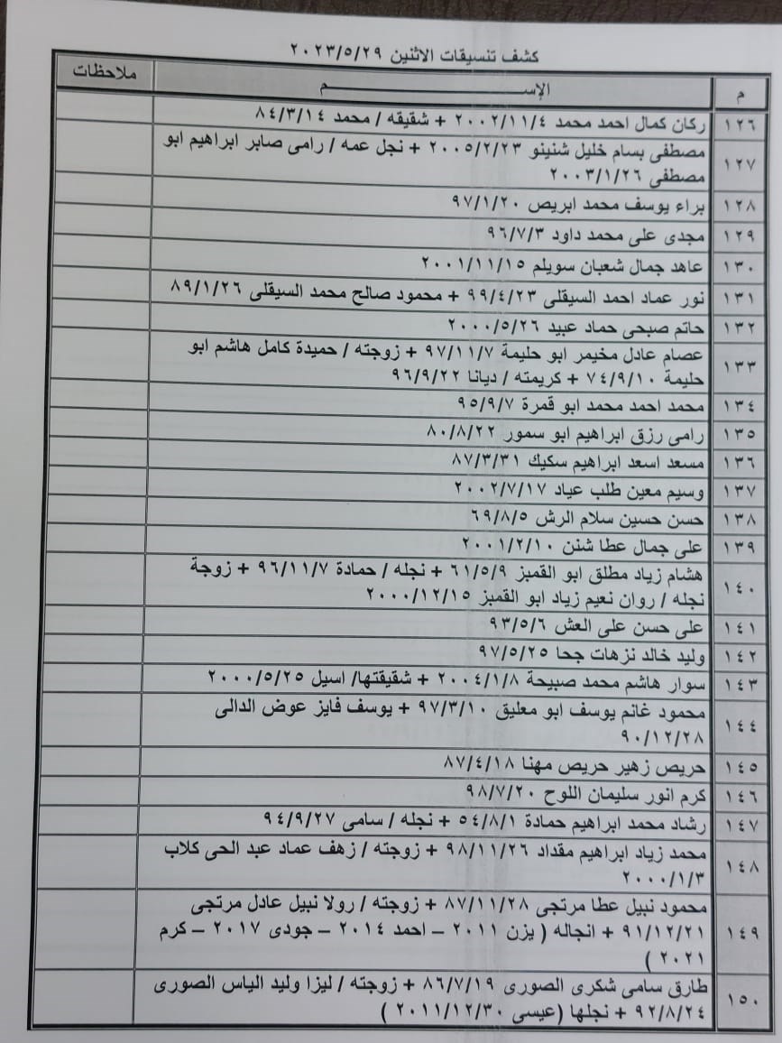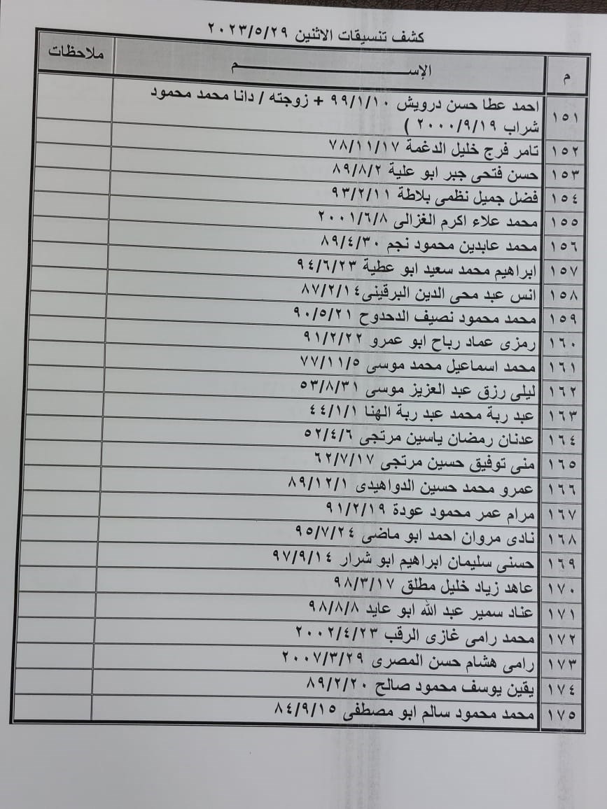 تعلن الهيئة العامة للمعابر والحدود بوزارة الداخلية والأمن الوطني عن وصول كشف "تنسيقات مصرية" للسفر عبر معبر رفح البري يوم الإثنين (29 مايو)، والذين عليهم التواجد س 7:00 صباحاً في الصالة الخارجية للمعبر لتسهيل سفرهم.