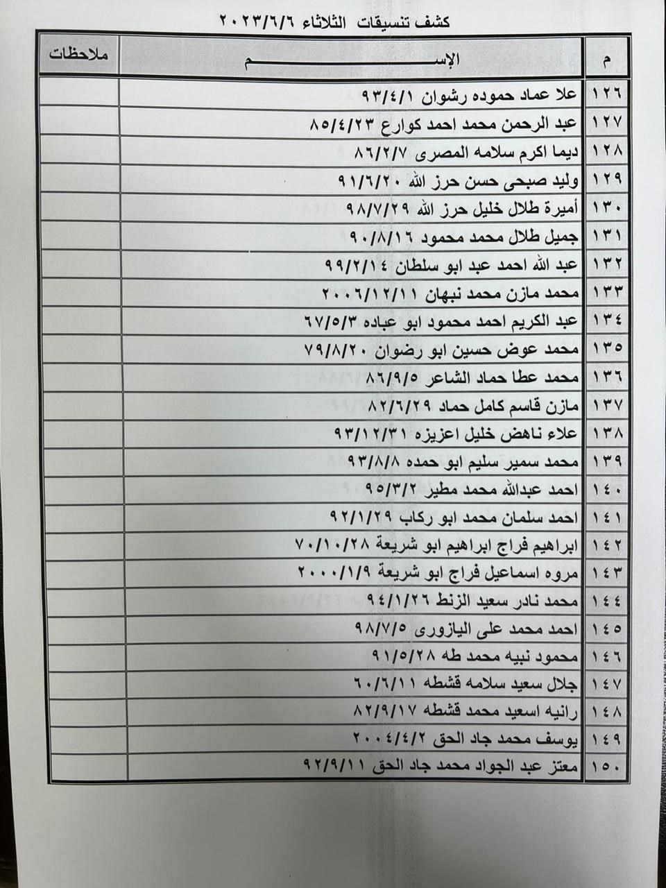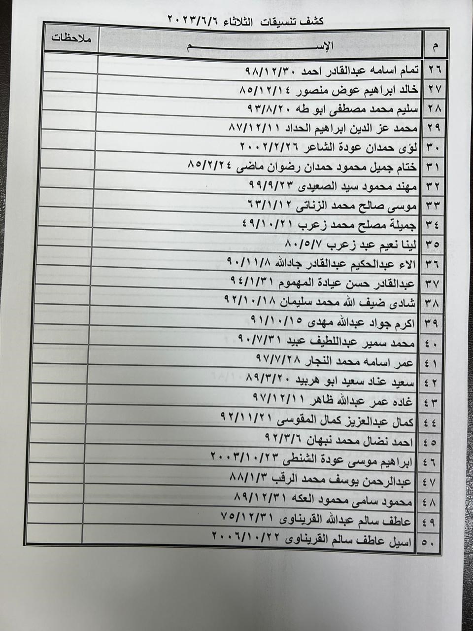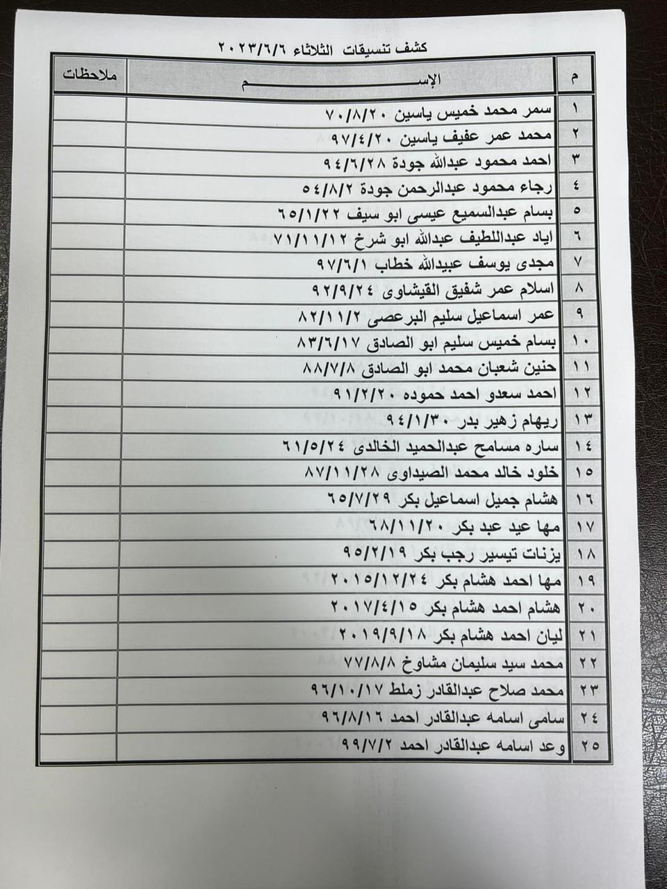 تعلن الهيئة العامة للمعابر والحدود بوزارة الداخلية والأمن الوطني عن وصول كشف "تنسيقات مصرية" للسفر عبر معبر رفح البري يوم الثلاثاء (6 يونيو)، والذين عليهم التواجد س 7:00 صباحاً في الصالة الخارجية للمعبر لتسهيل سفرهم.