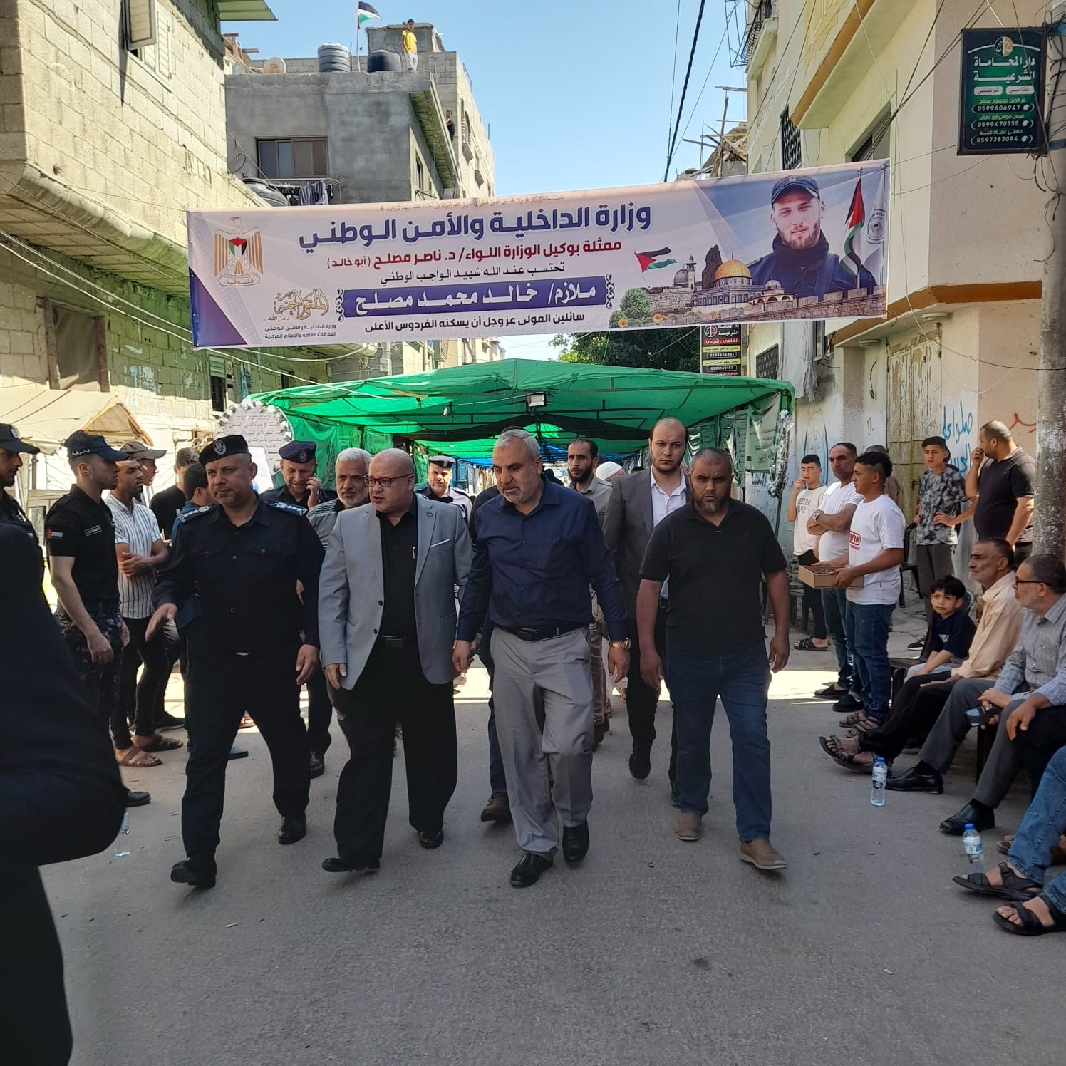 قدّم رئيس متابعة العمل الحكومي أ. عصام الدعليس واجب العزاء لذوي شهيد الواجب الوطني (ملازم/ خالد محمد مصلح)، بمخيم المغازي وسط قطاع غزة.