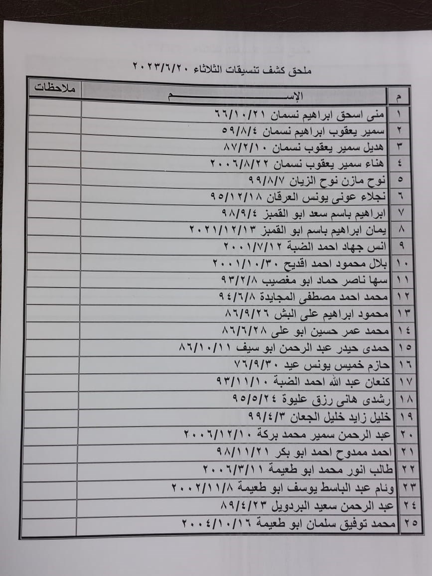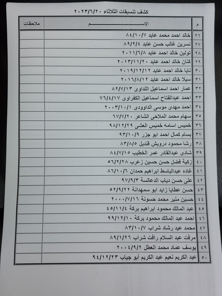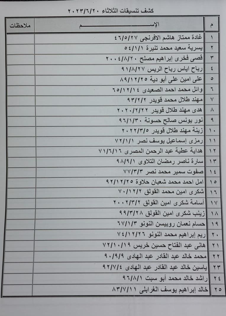 تعلن الهيئة العامة للمعابر والحدود بوزارة الداخلية والأمن الوطني عن وصول كشف "تنسيقات مصرية" للسفر عبر معبر رفح البري يوم الثلاثاء (20 يونيو)، والذين عليهم التواجد س 7:00 صباحاً في الصالة الخارجية للمعبر لتسهيل سفرهم.