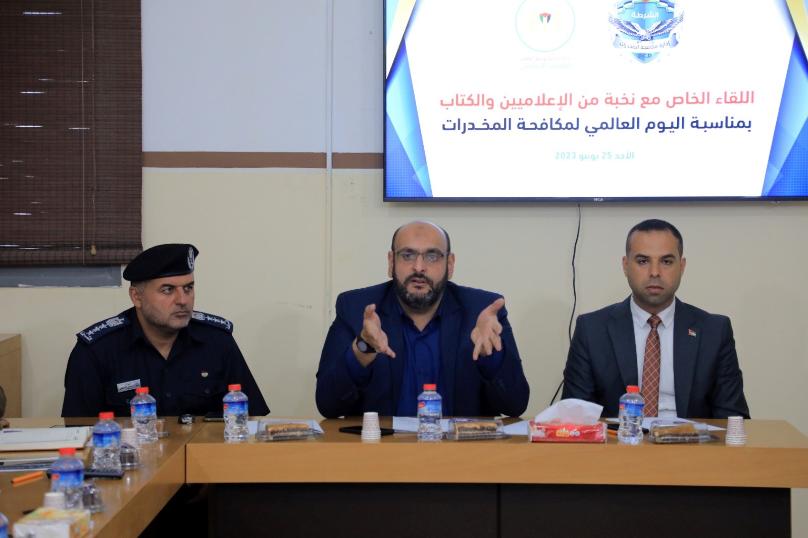 وحضر اللقاء مدير إدارة شرطة مكافحة المخدرات العميد أحمد القدرة، والمتحدث باسم وزارة الداخلية والأمن الوطني أ. إياد البزم، والمتحدث باسم الشرطة العميد أيمن البطنيجي، إلى جانب عدد من الكتّاب والإعلاميين.