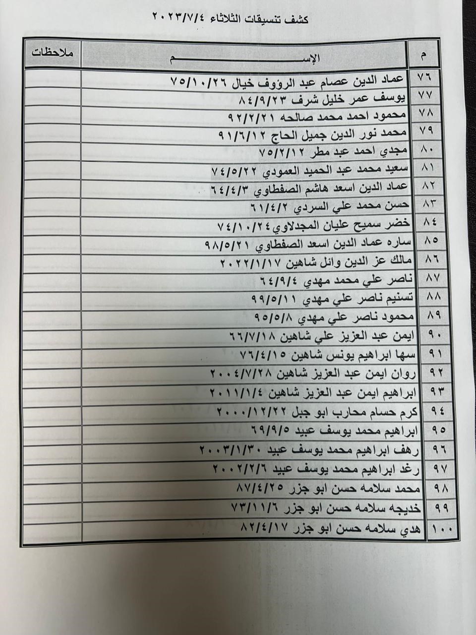 تعلن الهيئة العامة للمعابر والحدود بوزارة الداخلية والأمن الوطني عن وصول كشف "تنسيقات مصرية" للسفر عبر معبر رفح البري يوم الثلاثاء (4 يوليو)، والذين عليهم التواجد س 7:00 صباحاً في الصالة الخارجية للمعبر لتسهيل سفرهم.