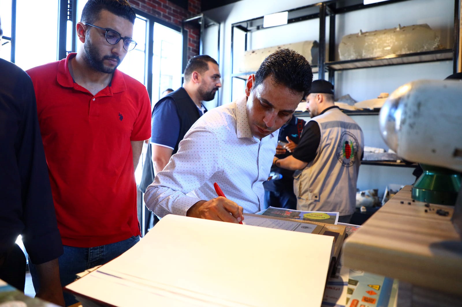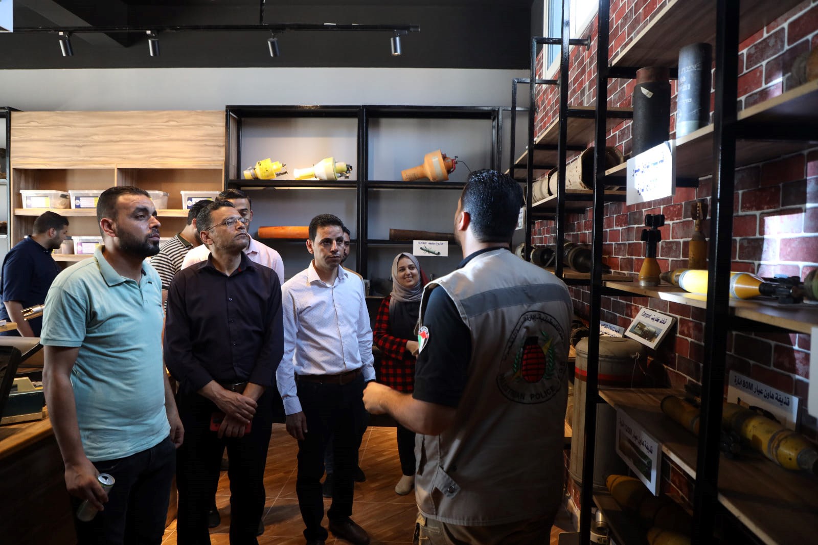 وتجول الوفد الزائر داخل معرض الذخائر العسكرية لدائرة هندسة المتفجرات بالشرطة، حيث استعرض مدير إدارة الأدلة الجنائية وهندسة المتفجرات العميد عائد حمادة عمل الإدارة وحجم الجهد المبذول في تحييد خطر المخلفات الحربية وحماية أرواح وممتلكات المواطنين، بالإضافة إلى الحديث عن عمل دائرة وأقسام الأدلة الجناية ودورها في الكشف عن الجريمة.