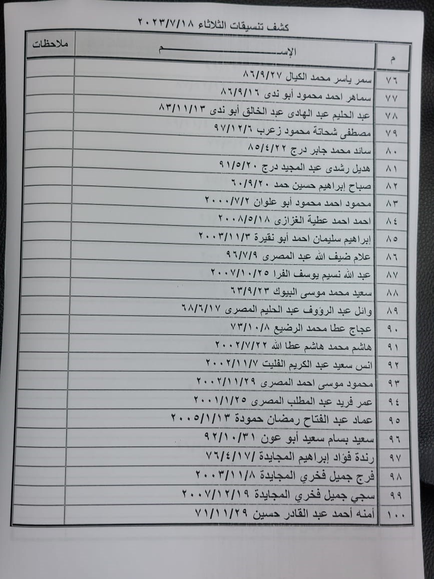 تعلن الهيئة العامة للمعابر والحدود بوزارة الداخلية والأمن الوطني عن وصول كشف "تنسيقات مصرية" للسفر عبر معبر رفح البري يوم الثلاثاء (18 يوليو)، والذين عليهم التواجد س 7:00 صباحاً في الصالة الخارجية للمعبر لتسهيل سفرهم.