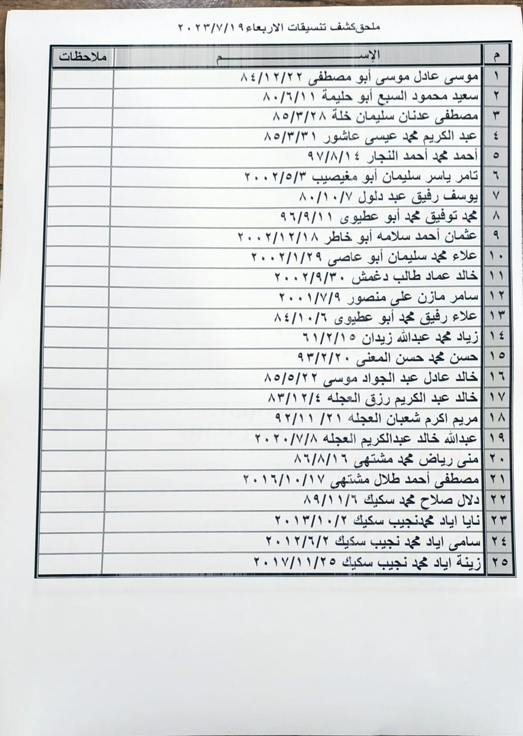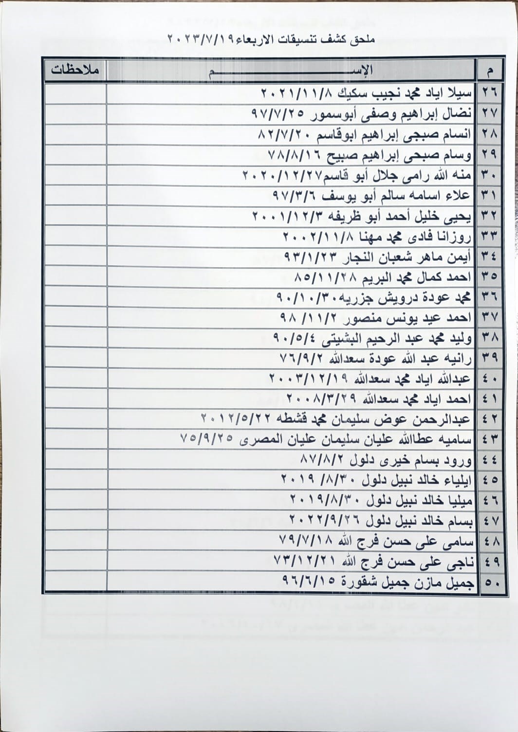 إعلان:(ملحق) كشف "تنسيقات مصرية" للسفر عبر معبر رفح غدًا الأربعاء (19 يوليو):