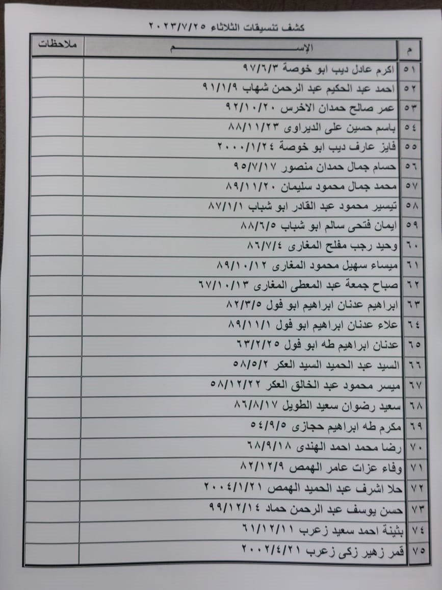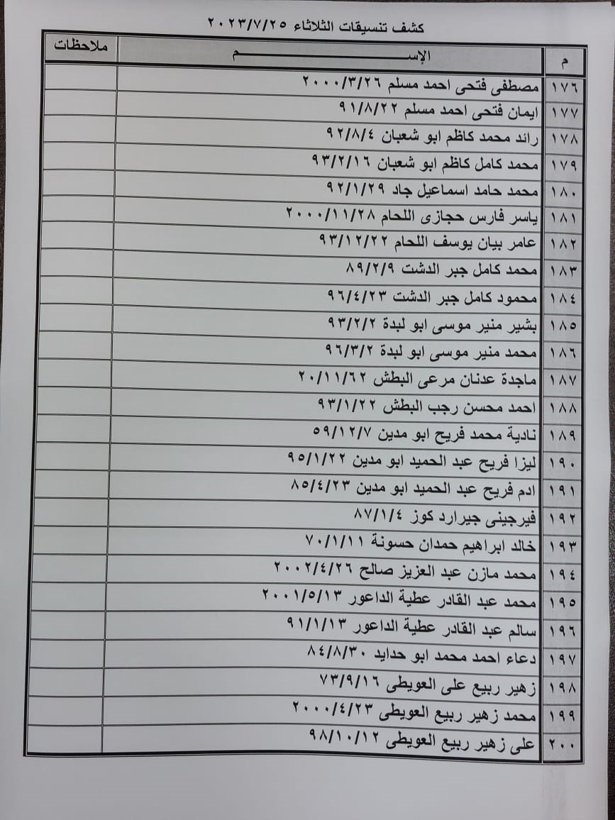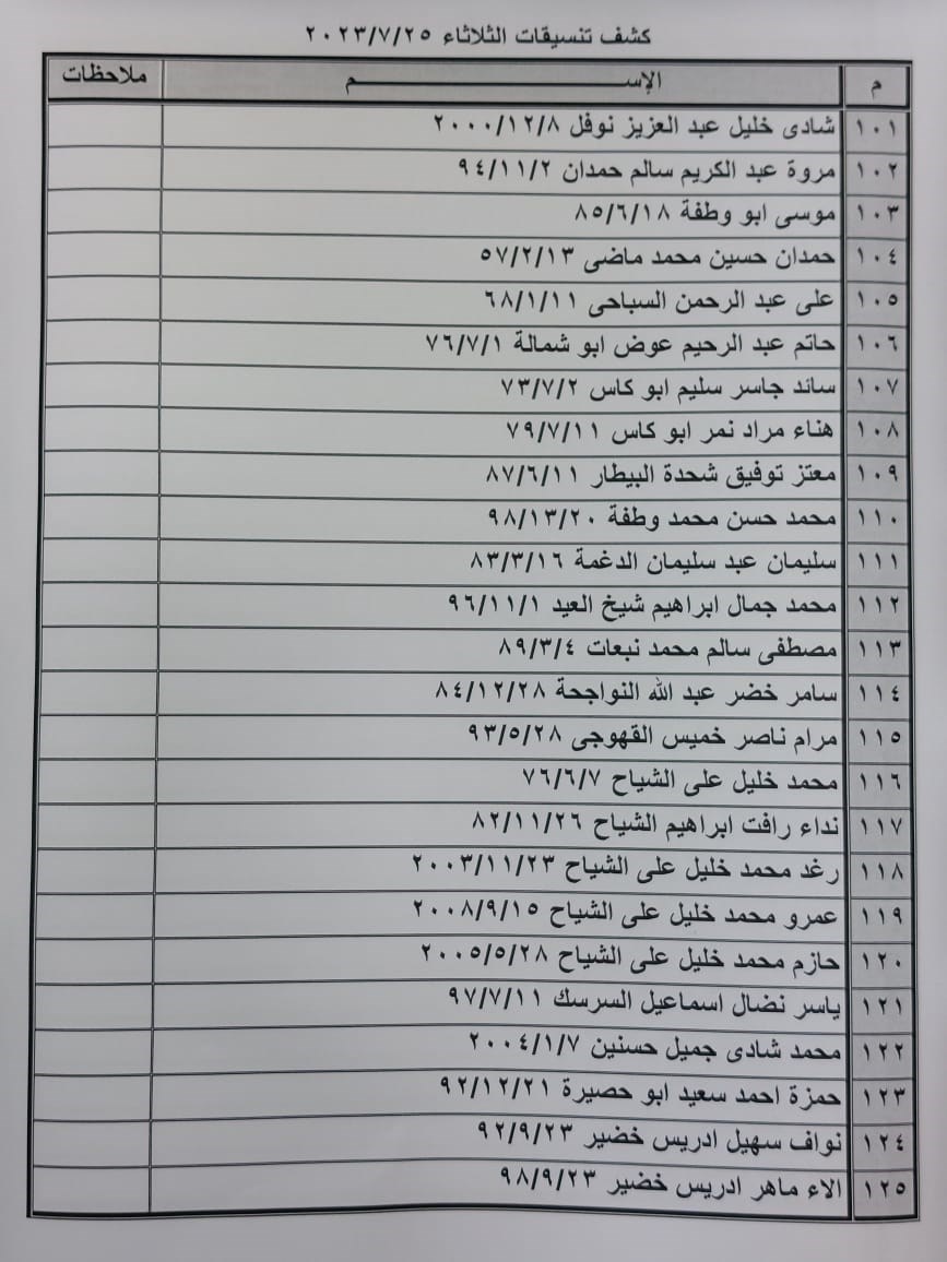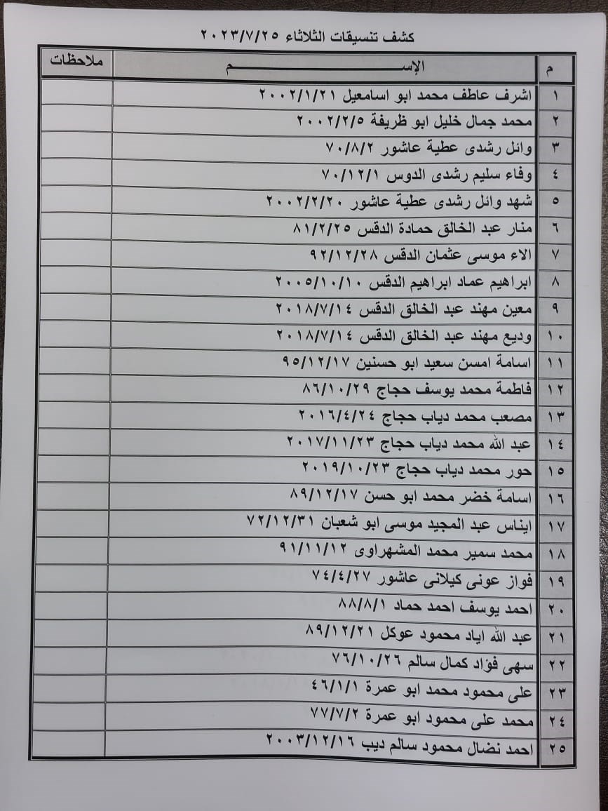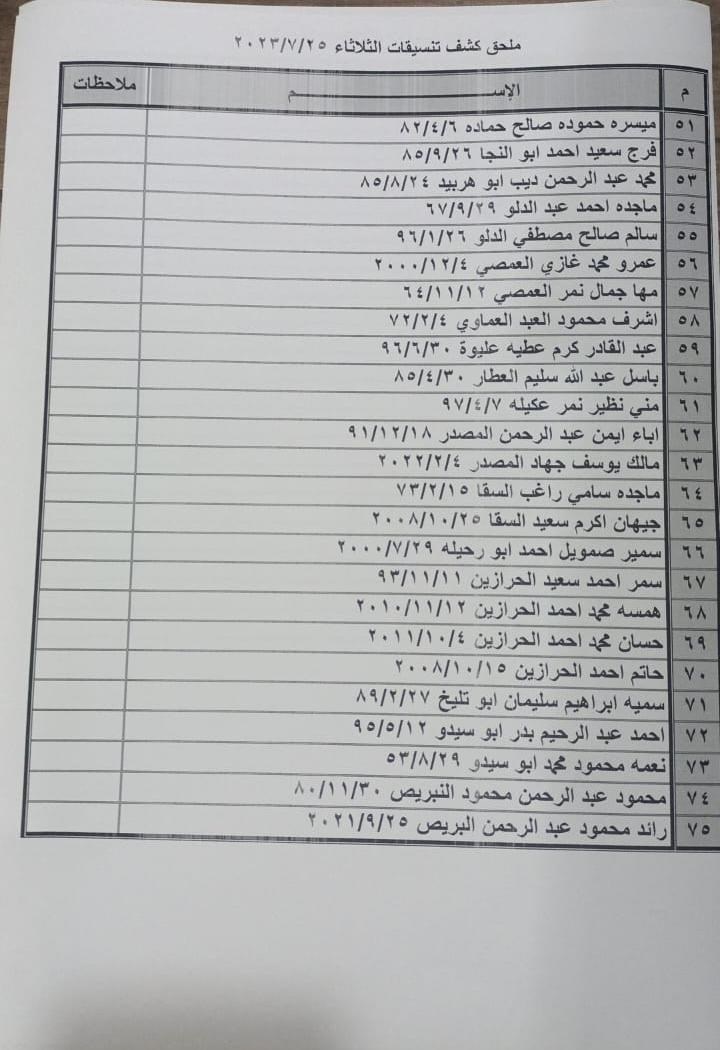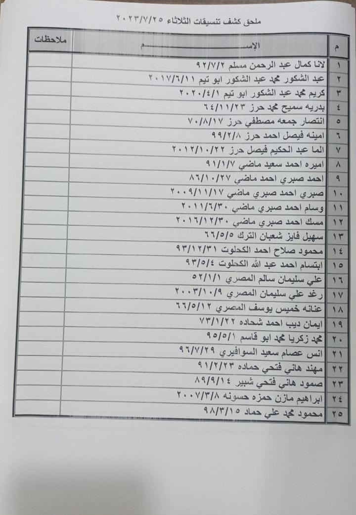 تعلن الهيئة العامة للمعابر والحدود بوزارة الداخلية والأمن الوطني عن وصول كشف "تنسيقات مصرية" للسفر عبر معبر رفح البري يوم الثلاثاء (25 يوليو)، والذين عليهم التواجد س 7:00 صباحاً في الصالة الخارجية للمعبر لتسهيل سفرهم.