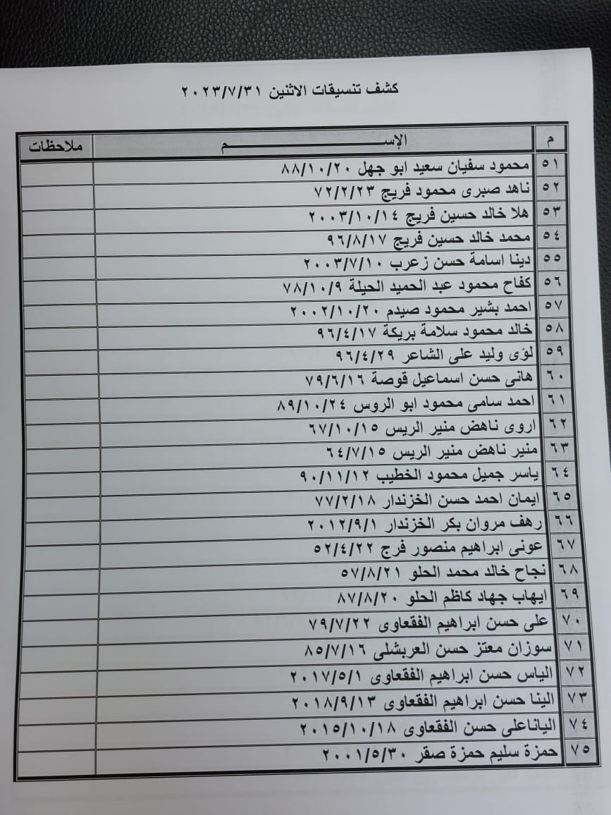تعلن الهيئة العامة للمعابر والحدود بوزارة الداخلية والأمن الوطني عن وصول كشف "تنسيقات مصرية" للسفر عبر معبر رفح البري يوم الإثنين (31 يوليو)، والذين عليهم التواجد س 7:00 صباحاً في الصالة الخارجية للمعبر لتسهيل سفرهم.