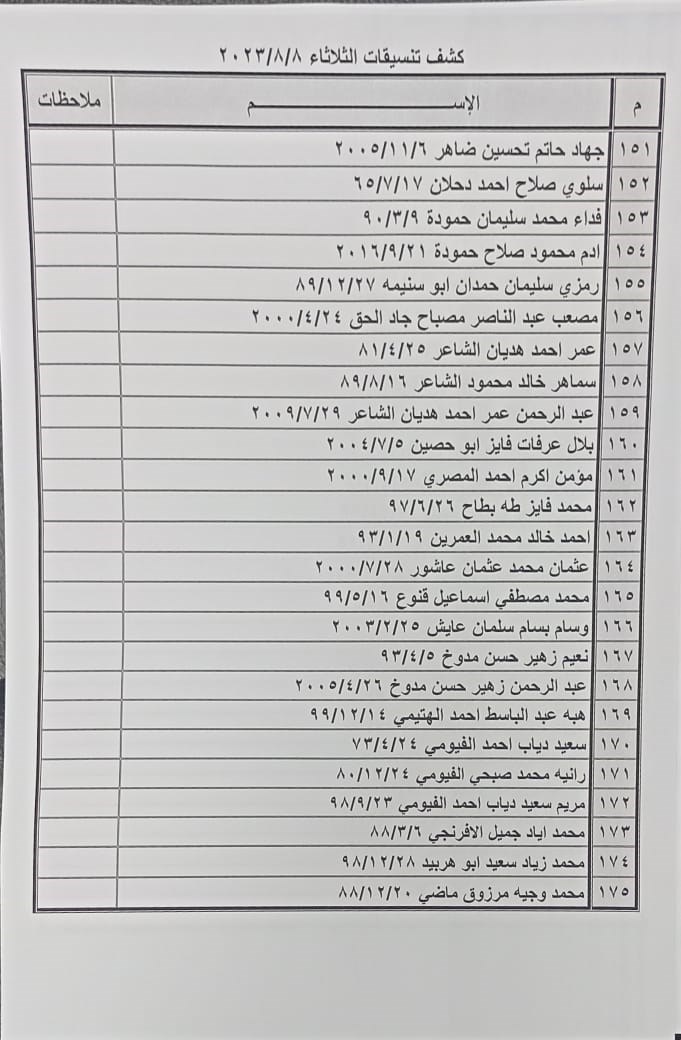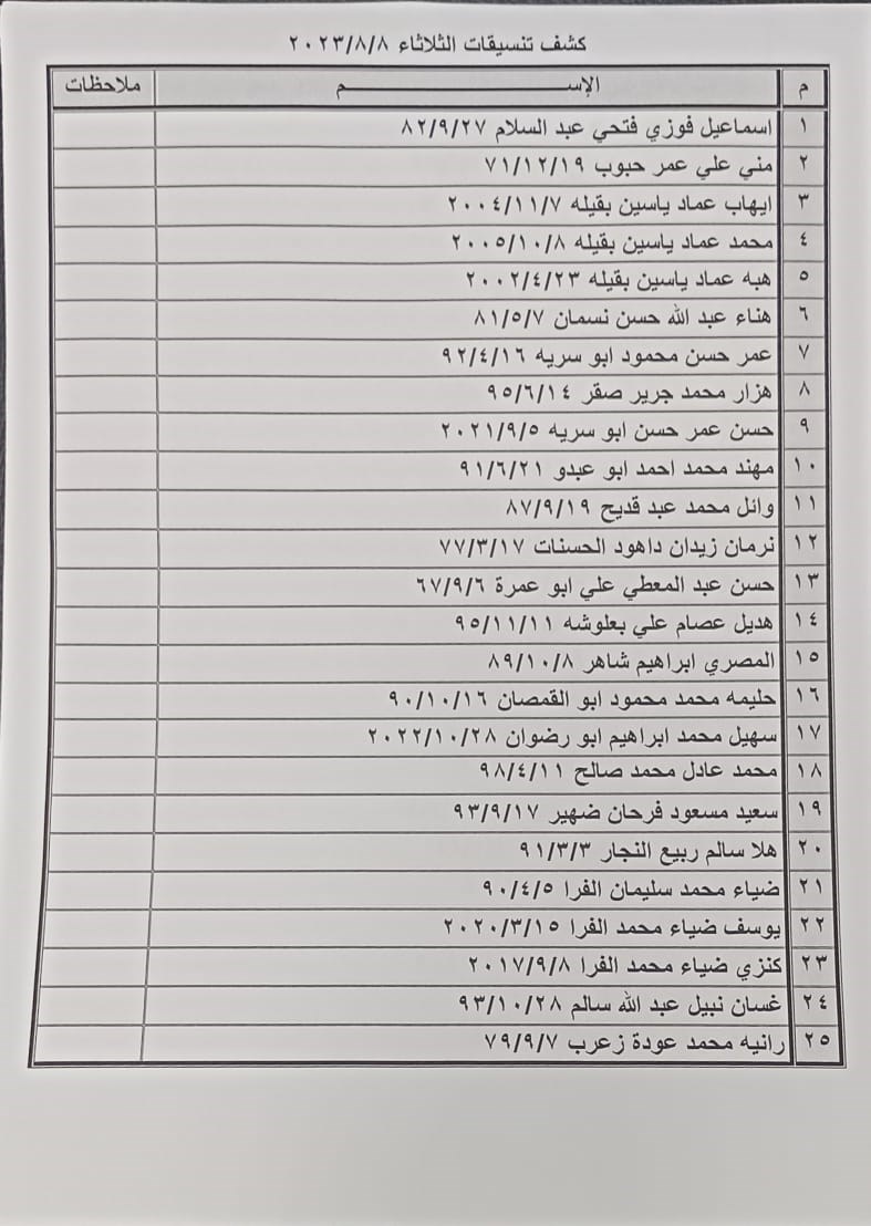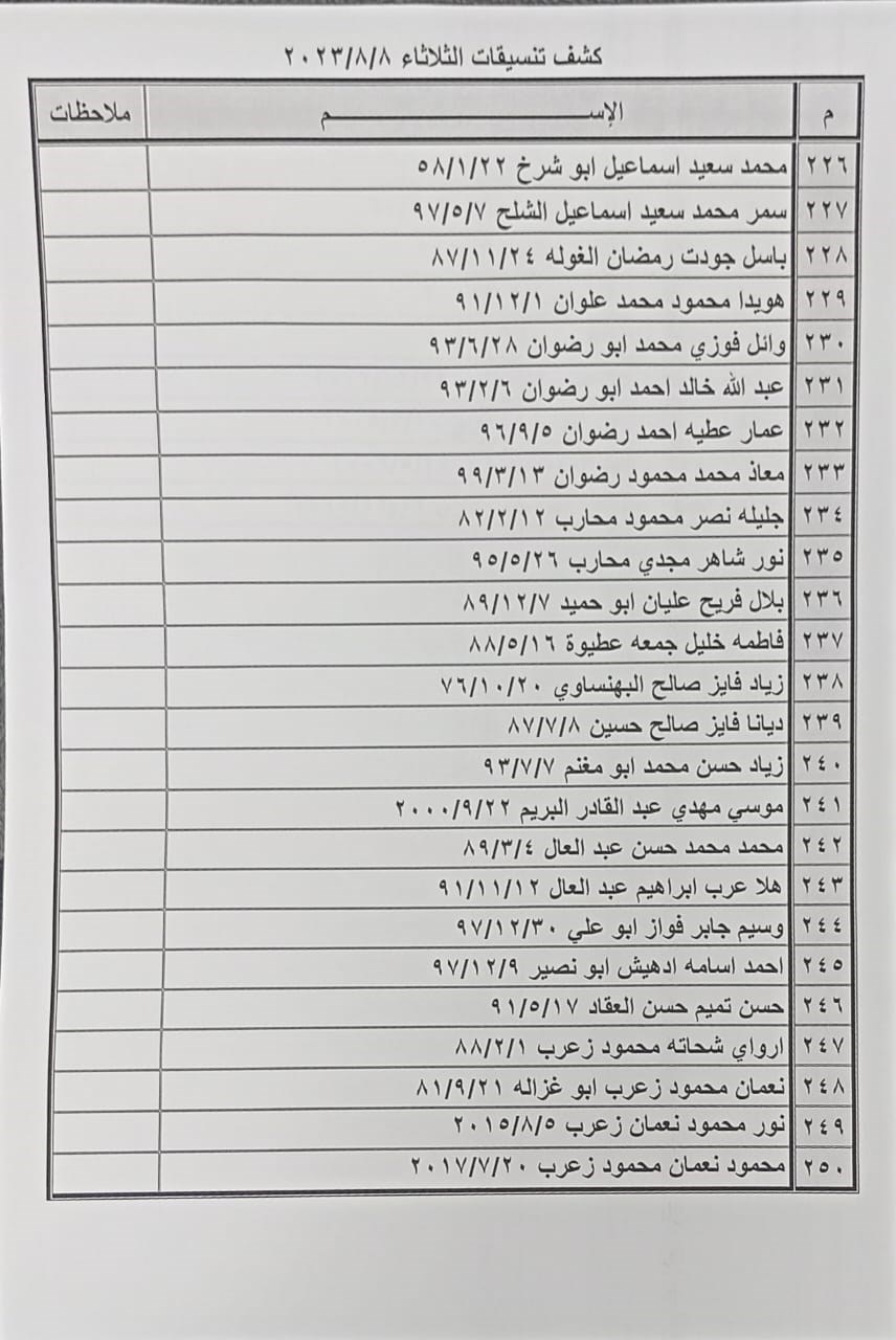تعلن الهيئة العامة للمعابر والحدود بوزارة الداخلية والأمن الوطني عن وصول كشف "تنسيقات مصرية" للسفر عبر معبر رفح البري يوم الثلاثاء (8 أغسطس)، والذين عليهم التواجد س 7:00 صباحاً في الصالة الخارجية للمعبر لتسهيل سفرهم.