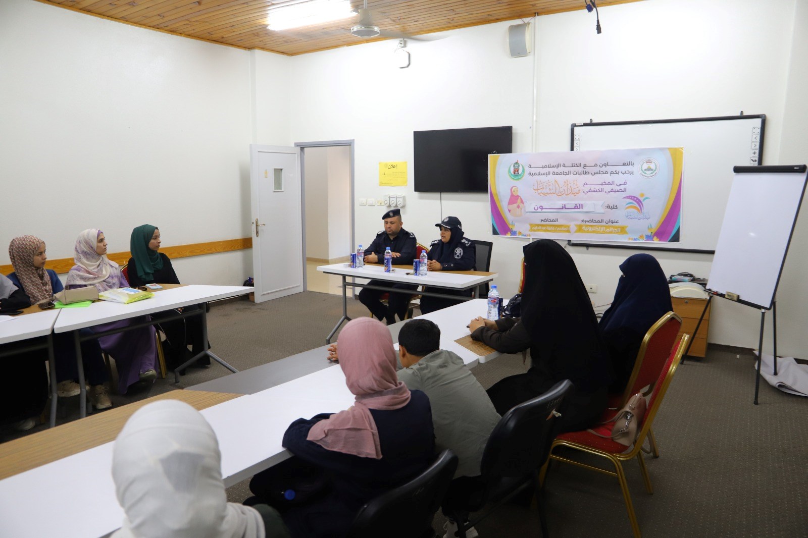 عقدت دائرة "الأسرة والطفولة" بإدارة الشرطة المجتمعية محاضرة توعوية استهدفت عدد من طالبات كلية القانون بالجامعة الإسلامية بغزة، للحديث عن خطورة الابتزاز والجرائم الالكترونية وأنواعها، وسبل الوقاية والحماية منها.