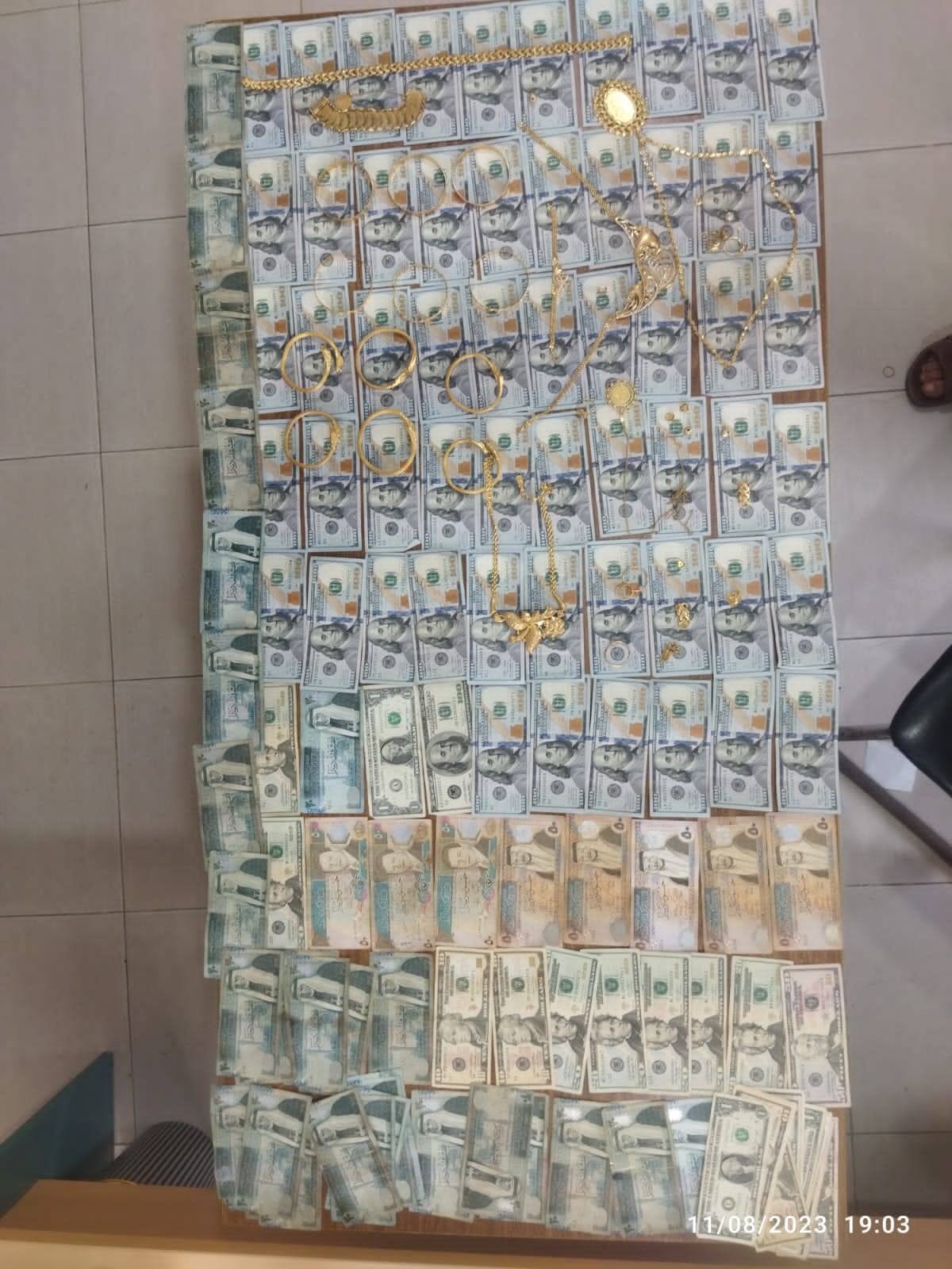 على إثر ذلك، تم ضبط المبلغ والمصاغ، ويجري إحالة القضية للنيابة لاستكمال الإجراءات القانونية في القضية.