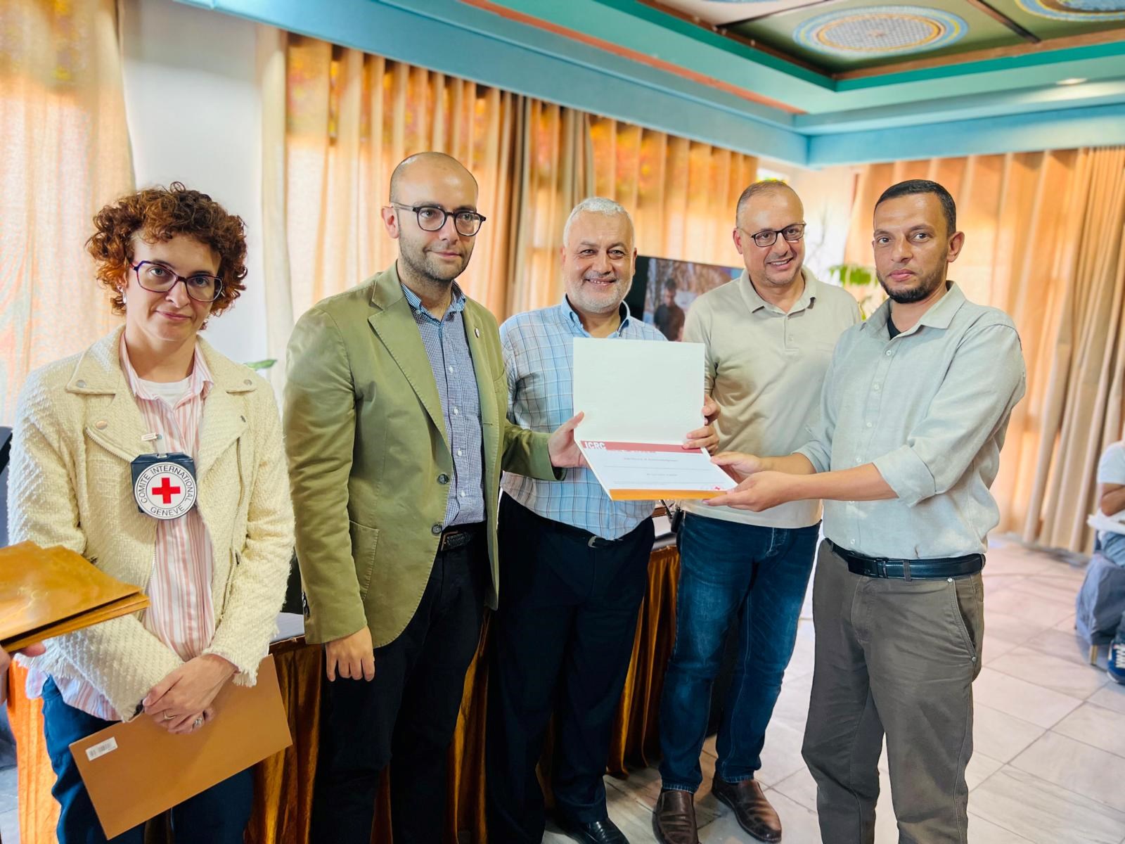 وحضر من اللجنة الدولية للصليب الأحمر، "وليام سكمبرج" مدير اللجنة في غزة، و "سلفيا" نائبة مديرة قسم الصحة، ونداء مرتجى مديرة برنامج مساعدة المساعدين.