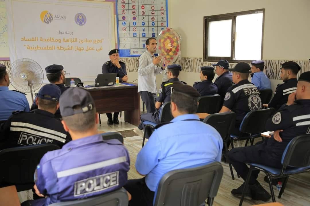 نظمت شرطة المرور بمحافظة خانيونس بالتعاون مع وحدة التخطيط والتطوير في جهاز الشرطة والائتلاف من أجل النزاهة والمسائلة "أمان "ورشة عمل بعنوان " تعزيز مبادئ النزاهة في عمل جهاز الشرطة الفلسطيني".