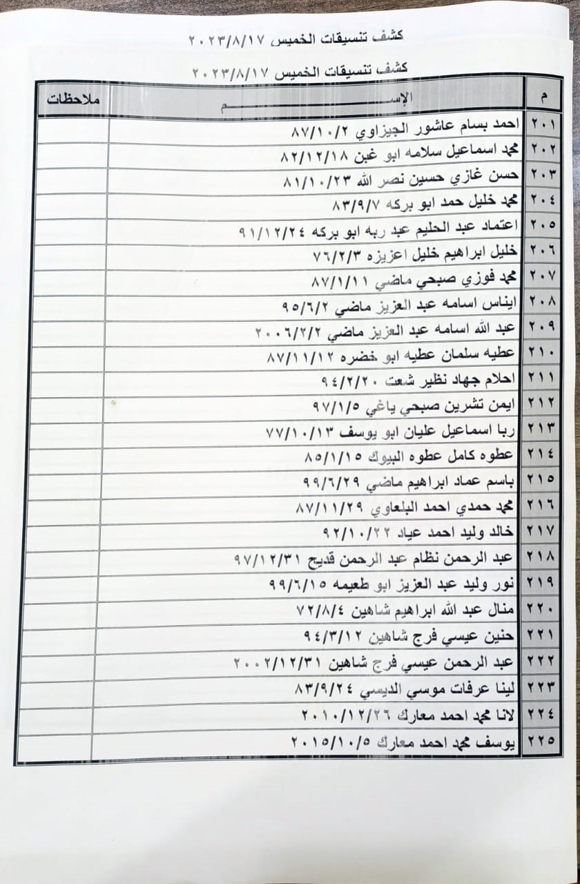 تعلن الهيئة العامة للمعابر والحدود بوزارة الداخلية والأمن الوطني عن وصول كشف "تنسيقات مصرية" للسفر عبر معبر رفح البري يوم الخميس (17 أغسطس)، والذين عليهم التواجد س 7:00 صباحاً في الصالة الخارجية للمعبر لتسهيل سفرهم.