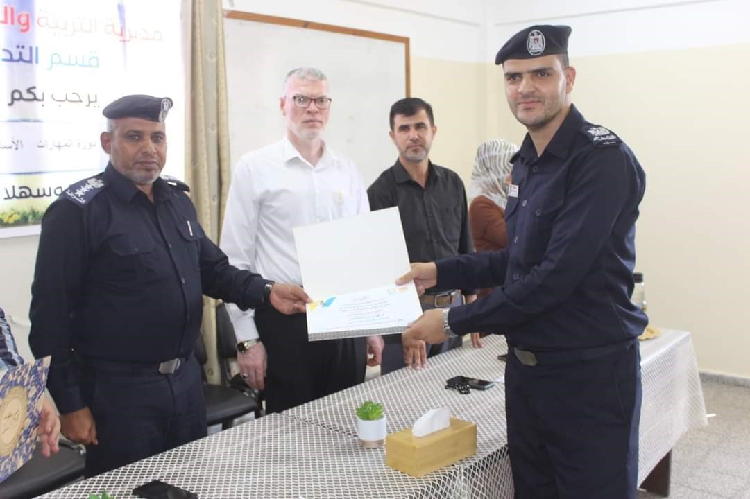 وحضر حفل الاختتام العميد رياض القاضى مدير شرطة رفح والدكتور أحمد لافى مدير مديرية التربية والتعليم برفح والأستاذة مروة الهوبى رئيس قسم التدريب فى المديرية.