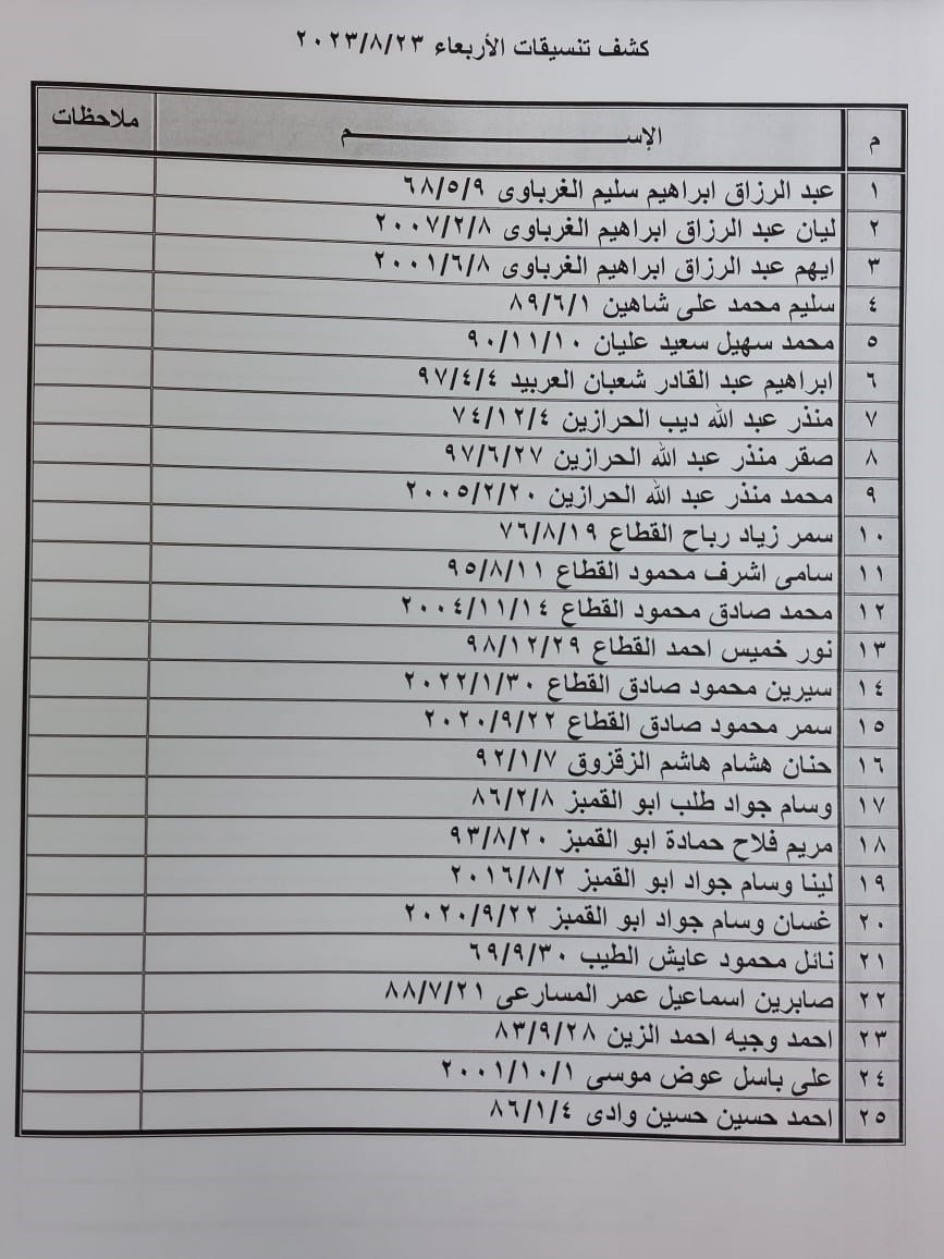 تعلن الهيئة العامة للمعابر والحدود عن وصول كشف "تنسيقات مصرية" للسفر عبر معبر رفح البري يوم الأربعاء (24 أغسطس)، والذين عليهم التواجد س 7:00 صباحاً في الصالة الخارجية للمعبر لتسهيل سفرهم.