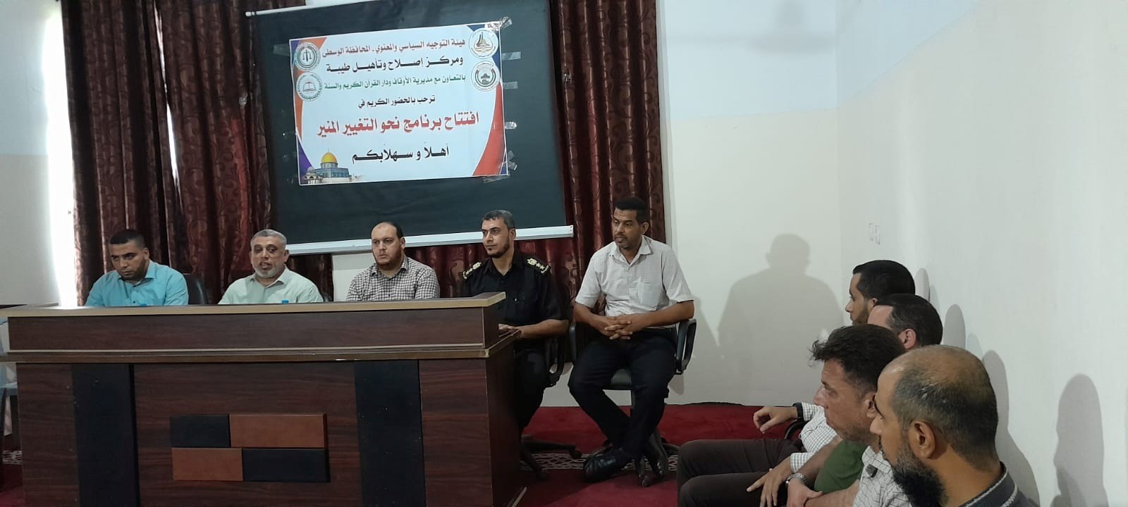 وحضر افتتاح البرنامج العقيد علي الأسطل مدير إدارة التعبئة بالهيئة والعقيد إبراهيم بدر نائب مدير مركز الإصلاح والتأهيل "طيبة"، وأ. يوسف أبو معيلق مدير دائرة الدعوة المجتمعية بالأوقاف، ود. محمد أصلان مدير دار القرآن الكريم والسنة بالوسطى.