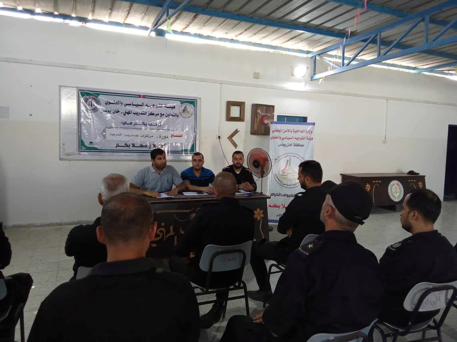 افتتحت هيئة التوجيه السياسي والمعنوي بمحافظة خانيونس دورة بعنوان " مرتكزات السياسية الشرعية " للعاملين في مركز التدريب المهني بالمحافظة.