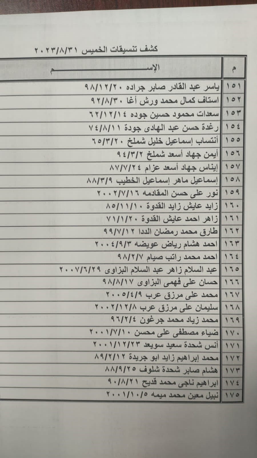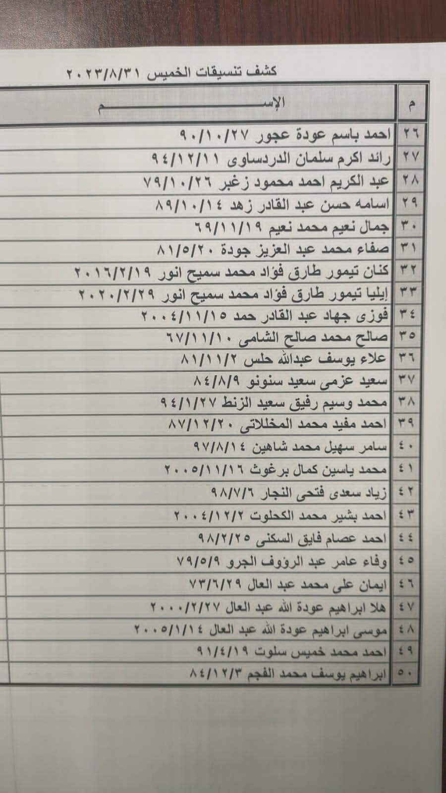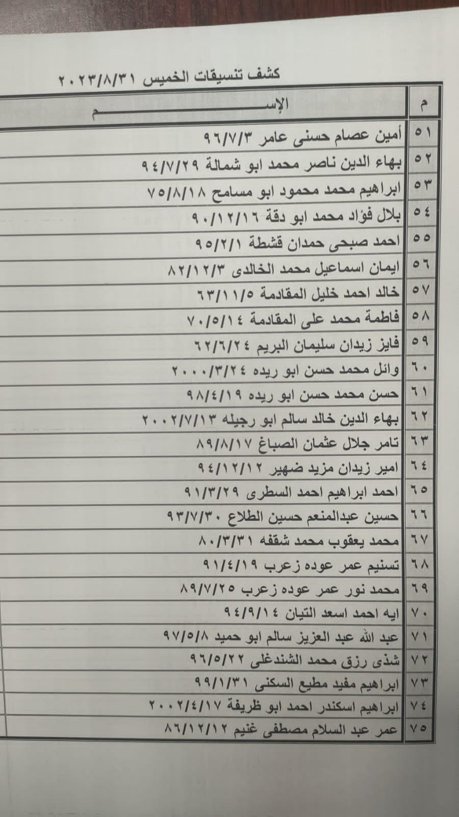 - تعلن الهيئة العامة للمعابر والحدود عن وصول كشف "تنسيقات مصرية" للسفر عبر معبر رفح البري يوم الخميس (31 أغسطس)، والذين عليهم التواجد س 7:00 صباحاً في الصالة الخارجية للمعبر لتسهيل سفرهم.