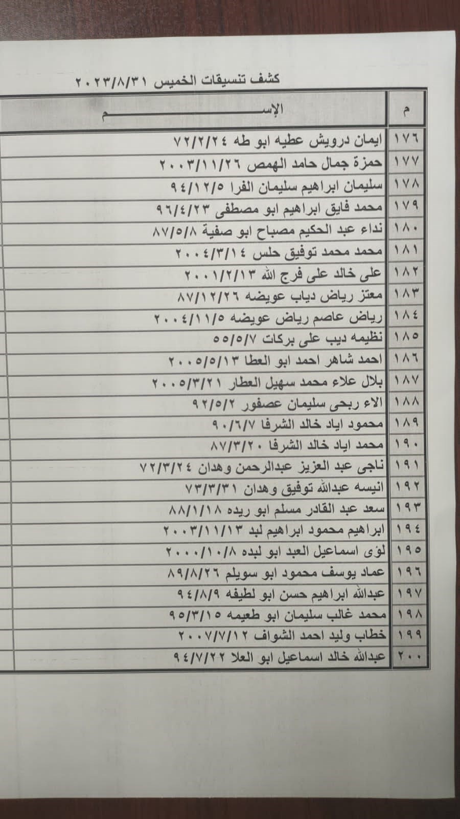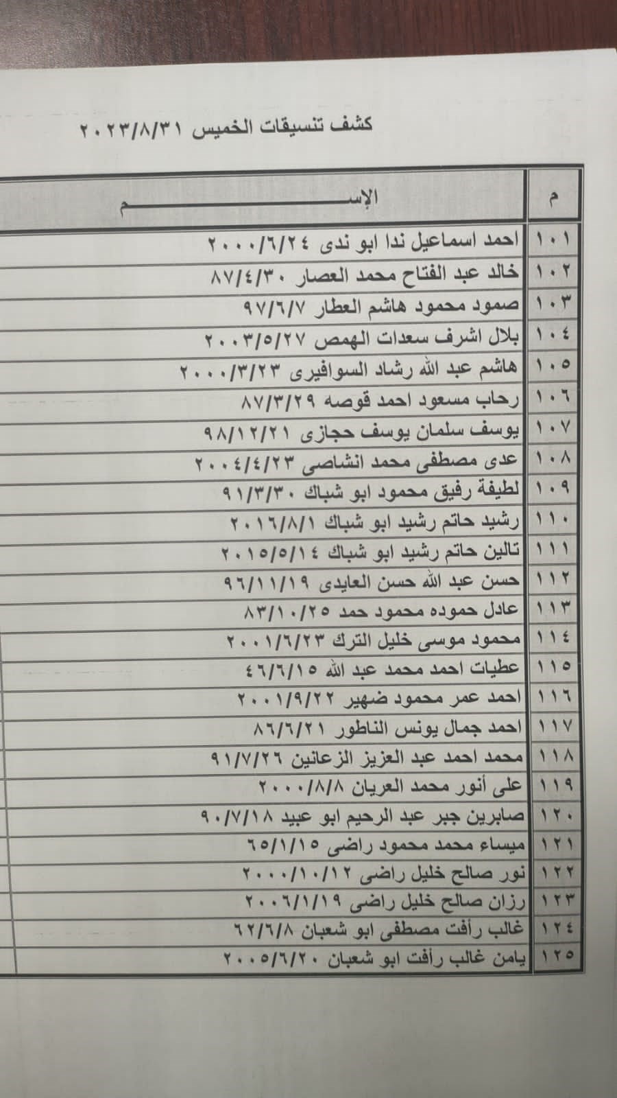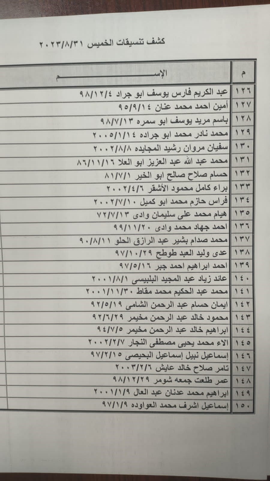 - تعلن الهيئة العامة للمعابر والحدود عن وصول كشف "تنسيقات مصرية" للسفر عبر معبر رفح البري يوم الخميس (31 أغسطس)، والذين عليهم التواجد س 7:00 صباحاً في الصالة الخارجية للمعبر لتسهيل سفرهم.