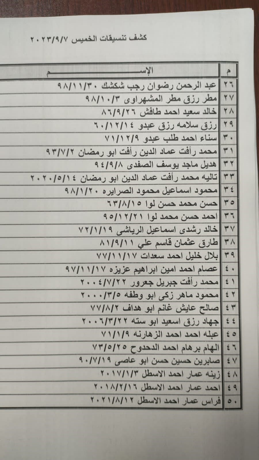 تعلن الهيئة العامة للمعابر والحدود عن وصول كشف "تنسيقات مصرية" للسفر عبر معبر رفح البري يوم الخميس (7 سبتمبر)، والذين عليهم التواجد س 7:00 صباحاً في الصالة الخارجية للمعبر لتسهيل سفرهم.