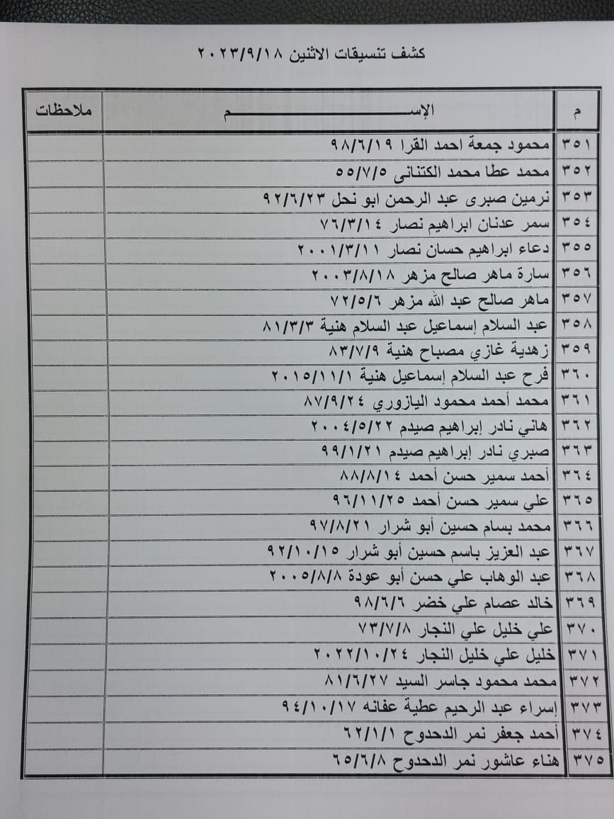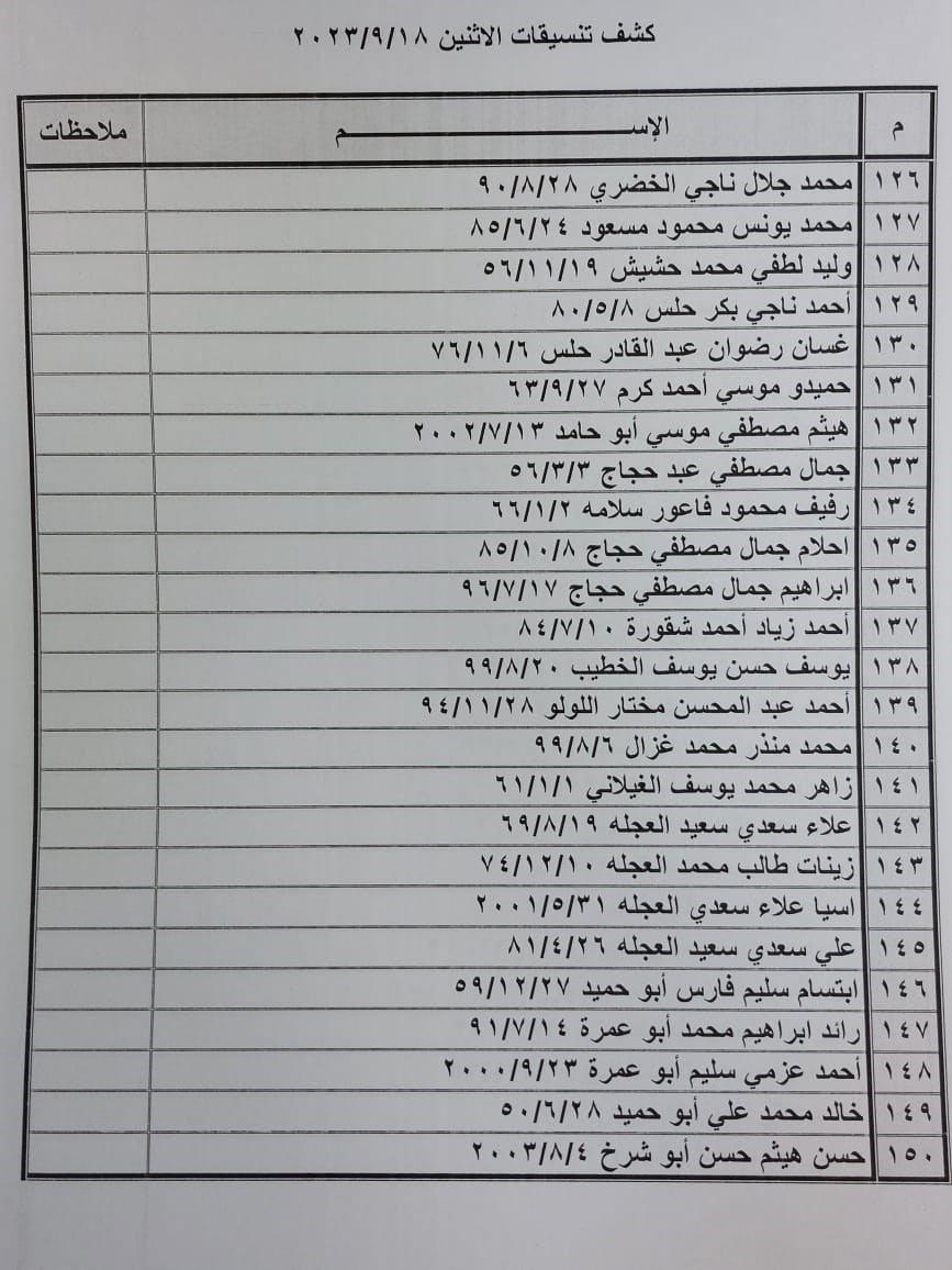 تعلن الهيئة العامة للمعابر والحدود عن وصول كشف "تنسيقات مصرية" للسفر عبر معبر رفح البري يوم الإثنين (18 سبتمبر)، والذين عليهم التواجد س 7:00 صباحاً في الصالة الخارجية للمعبر لتسهيل سفرهم.