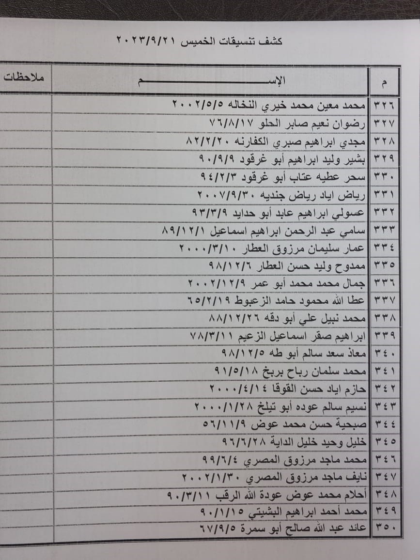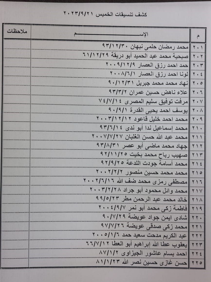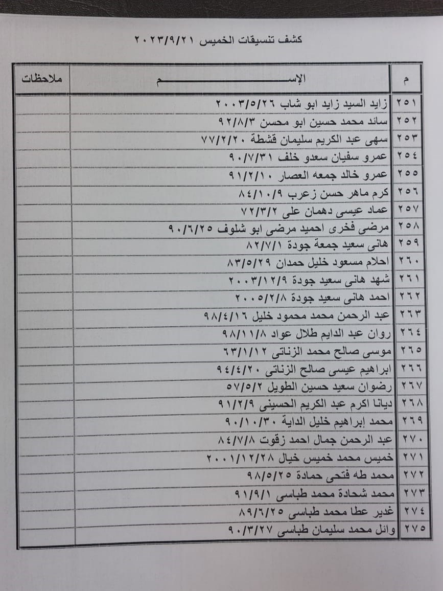 تعلن الهيئة العامة للمعابر والحدود عن وصول كشف "تنسيقات مصرية" للسفر عبر معبر رفح البري يوم الخميس (21 سبتمبر)، والذين عليهم التواجد س 7:00 صباحاً في الصالة الخارجية للمعبر لتسهيل سفرهم.