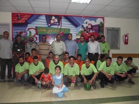 زار وفد من الاتحاد العام للرياضة العسكرية ومديرية التأهيل والإصلاح بوزارة الداخلية مستشفي الدكتور عبد العزيز الرنتيسي التخصصي للأطفال تقدمه رئيس الاتحاد نبيل حمتو ونائبه سعدي سرور ومدير سجن غزة المركزي المقدم علاء سرور بصحبة عدد من نزلاء سجن غزة المركزي المشاركين في المخيم الكشفي بعنوان "إشراقة أمل" لمقر مستشفي الرنتيسي بمدينة غزة.