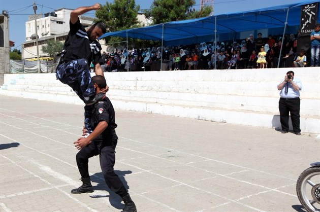كما تخلل حفل التخريج عروضاً عدة قدمها أفراد قوات التدخل وحفظ النظام في الشرطة إلى جانب عروض في الدفاع عن النفس نفذها أبطال الاتحاد الرياضي في الشرطة الفلسطينية .