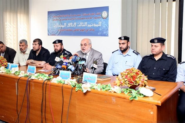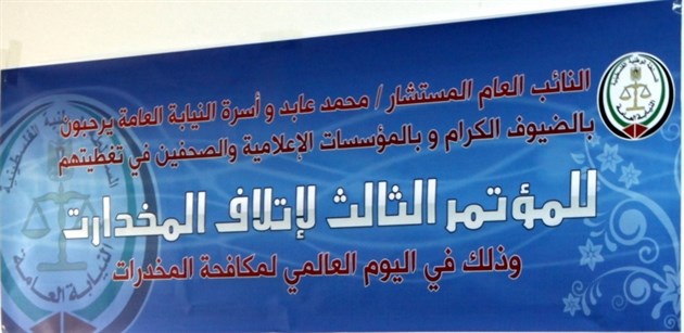 وجاءت عملية إتلاف كميات كبيرة من المخدرات عقب مؤتمر صحفي بمناسبة اليوم العالمي لمكافحة المخدرات عقد في ديوان النائب العام بغزة بمشاركة المستشار محمد عابد ومدير عام الشرطة الفلسطينية العميد تيسير البطش ومدير عام الصيدلة في وزارة الصحة الدكتور منير البرش.