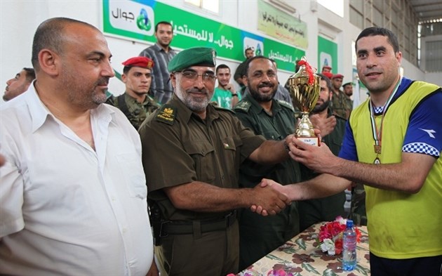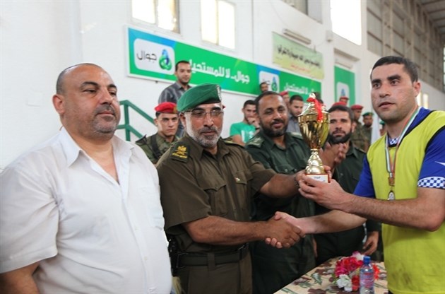 وظفر فريق الكتيبة الأولى - شمال غزة - بكأس البطولة التي نظمت على أرض صالة سعد صايل بغزة خلال لقائه مع فريق الإدارة و التنظيم التابعة للأمن الوطني .
