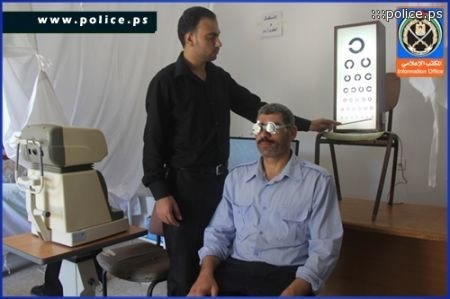 Palestinian police in the Gaza Strip has organized in a cooperation with the Specialist Optics Jaffa Center on Wednesday a medical test day at the Arafat's passport clinic in the police