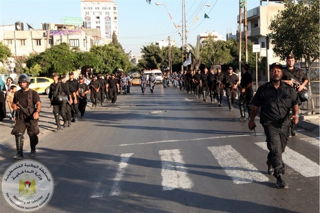 نظمت وزارة الداخلية والأمن الوطني عصر السبت مسيراً عسكرياً مشتركاً لأجهزتها الأمنية في قطاع غزة جاب الشوارع والمفترقات الرئيسية لمحافظة غزة.