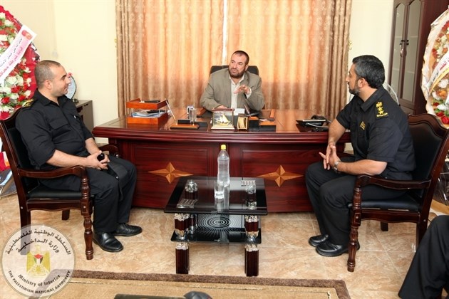وفي الزيارة الثانية تفقد الوزير حماد عمل جهاز الشرطة الفلسطينية واجتمع بمديرها العميد تيسير البطش ومدراء الإدارات الشرطية .