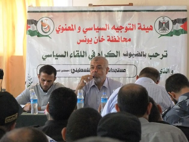 نظمت هيئة التوجيه السياسي والمعنوي بمحافظة خان يونس جنوب قطاع غزة لقاءً سياسيًا للأجهزة الأمنية في المحافظة حول آخر المستجدات على الساحة الفلسطينية.