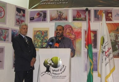 وخلال كلمته اشاد المدهون بالدور الكبير الذي يقوم به الفنانون وان الريشة والقلم لا تقل عن البندقية في مواجهة وتحدي العدو الغاصب وفي ايصال كثير من الرسائل التي تعبر عن الواقع الفلسطيني.