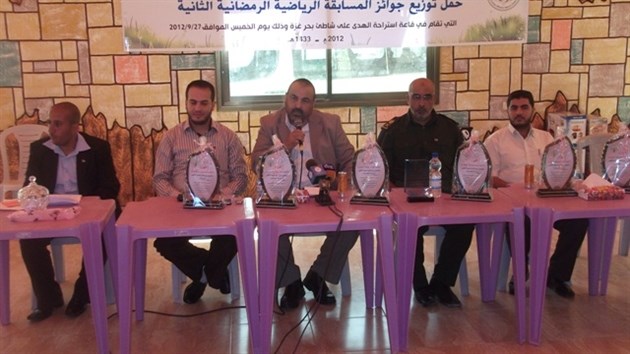 نظم الاتحاد العام للرياضة العسكرية بوزارة الداخلية وبالتعاون مع إذاعة الأقصى احتفالاً رياضياً لتكريم الفائزين في المسابقة الرياضية الرمضانية الثانية في القاعة الرئيسية لاستراحة الهدي على شاطئ بحر مدينة غزة .