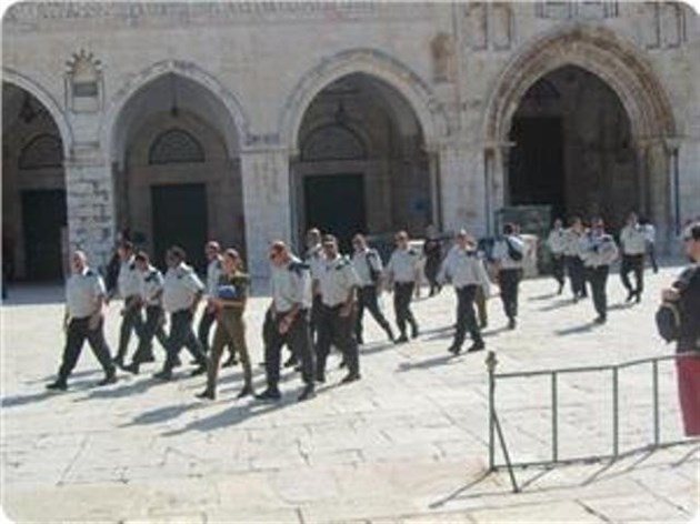 Al-Aqsa Foundation for Waqf and heritage confirmed in a statement that a group of 30 Israeli officers, in their military uniforms, stormed on Sunday al-Aqsa Mosque, from the Mughrabi Gate and remained there for over an hour.
