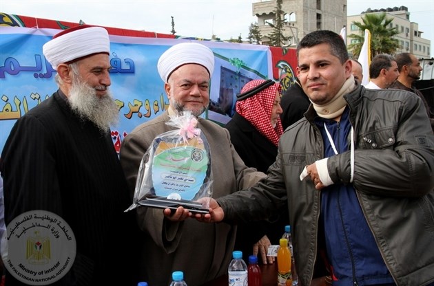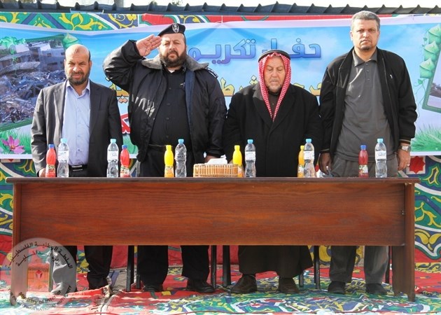 وحضر حفل التكريم الذي عقد على أطلال مقر قيادة الشرطة المدمر بمدينة عرفات للشرطة بغزة النائب في المجلس التشريعي الفلسطيني أ. مشير المصري ووكيل وزارة الداخلية أ. كامل أبو ماضي ومستشار رئيس الوزراء ووزير الداخلية لشئون العشائر والإصلاح الحاج أبو ناصر الكجك والمراقب العام للوزارة المستشار سامي نوفل ومدير مدير عام الشرطة العميد تيسير البطش