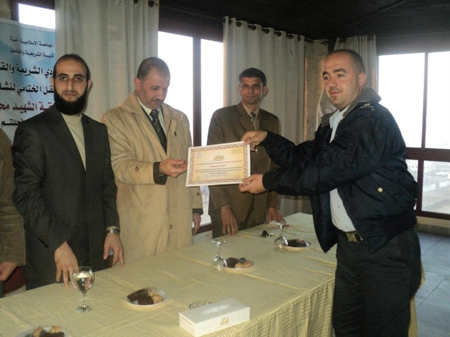 كرم نادي الشريعة والقانون بمجلس طلاب الجامعة الإسلامية بغزة الخميس الماضي عدداً من المحاضرين والطلاب المشاركين في سلسلة دوراتها خلال الفصل الدراسي الأول الحالي.