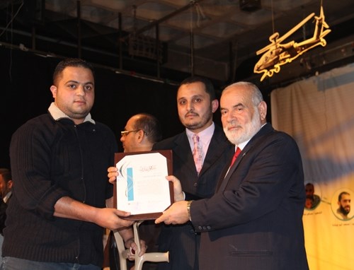 وقال "لحظات الانتصار التكريم لهؤلاء الصحفيين والإعلاميين والمصورين هؤلاء الذين وقفوا بكل قوة خلال العدوان الصهيوني في حجارة السجيل ومعركة الفرقان وفي كل حياتهم هذا الإعلام الذي يخدم القضية ويبين الوجه القبيح لهذا العدوان المجرم".