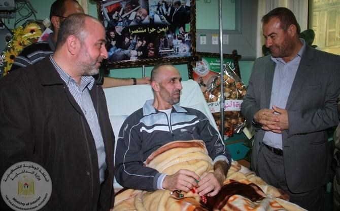 زار وفد من وزارة الداخلية والأمن الوطني الأربعاء الأسير المحرر أيمن الشراونة للاطمئنان على صحته عقب إفراج الاحتلال عنه وإبعاده لغزة بعد خوضه إضراباً مفتوحاً عن الطعام طيلة 260 يوماً.